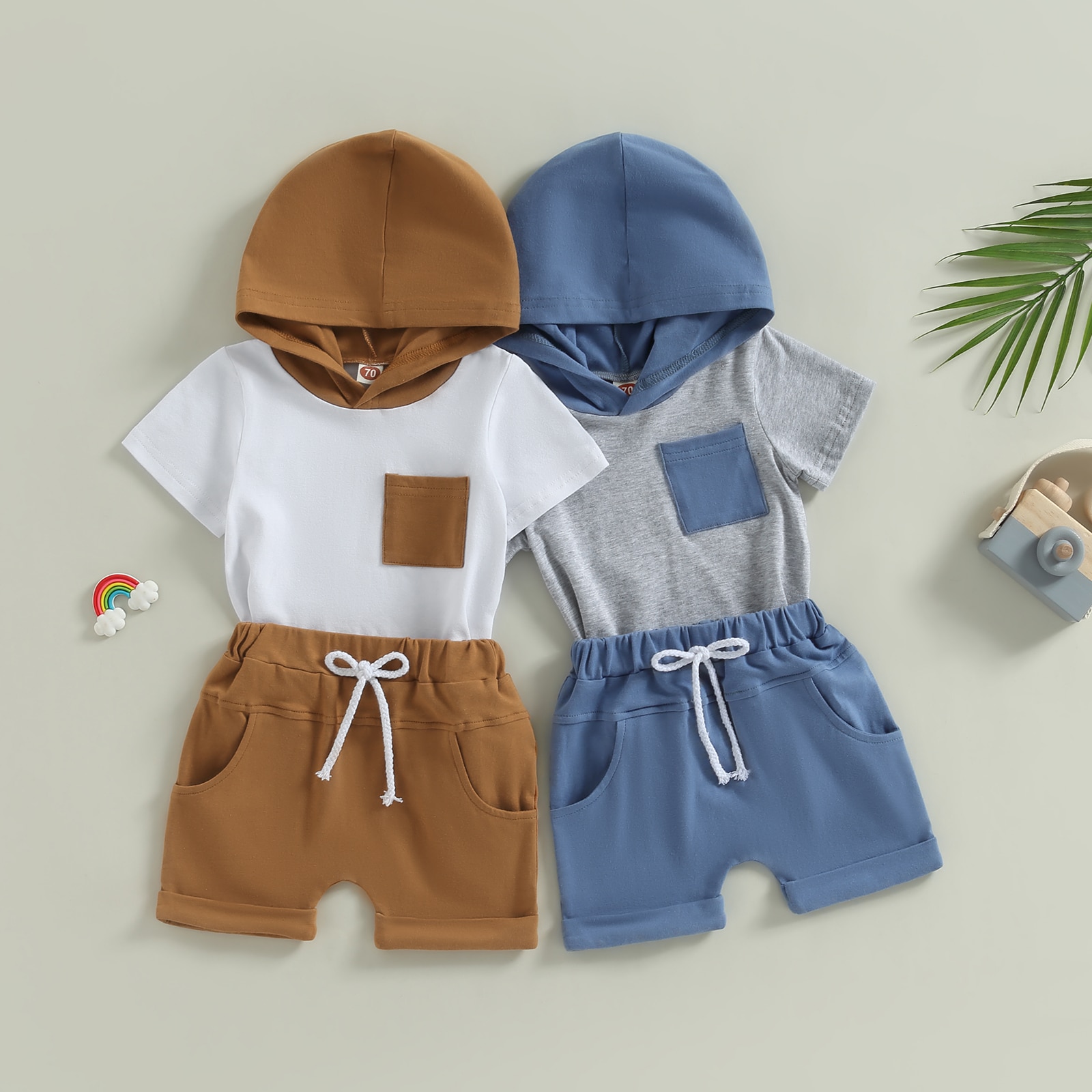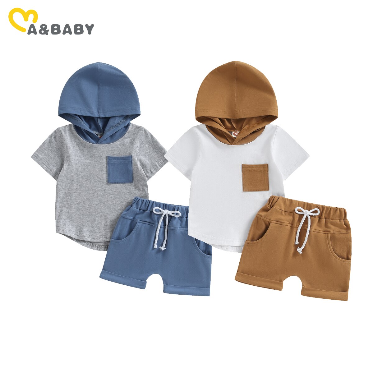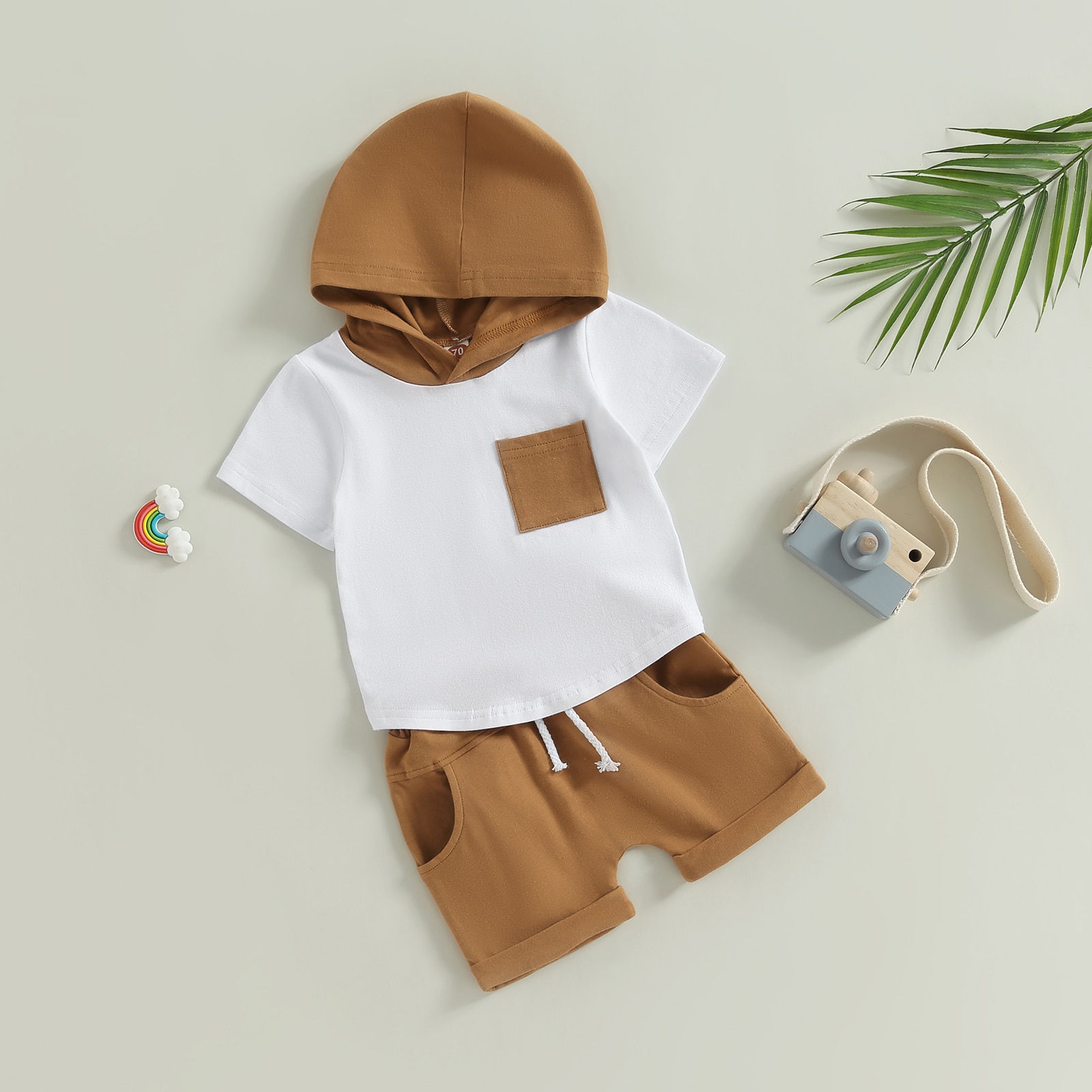 Детский летний костюм с капюшоном, футболка с коротким рукавом и шорты