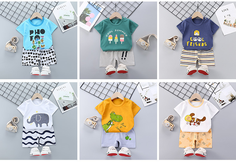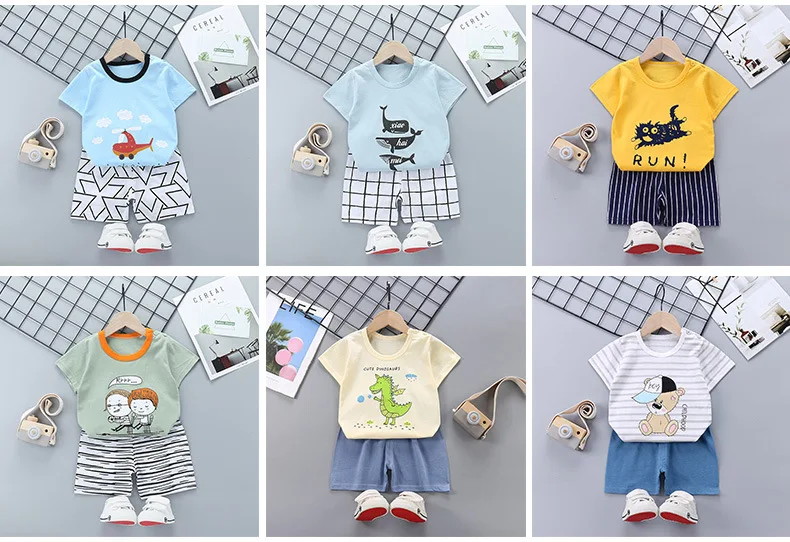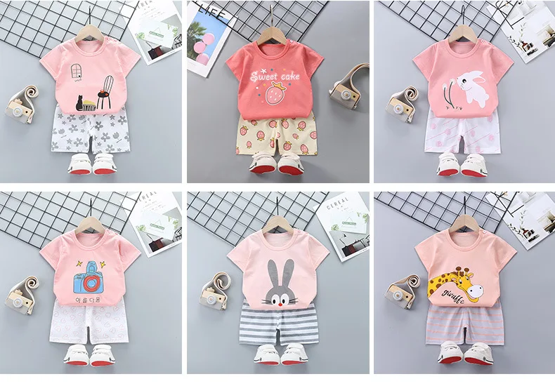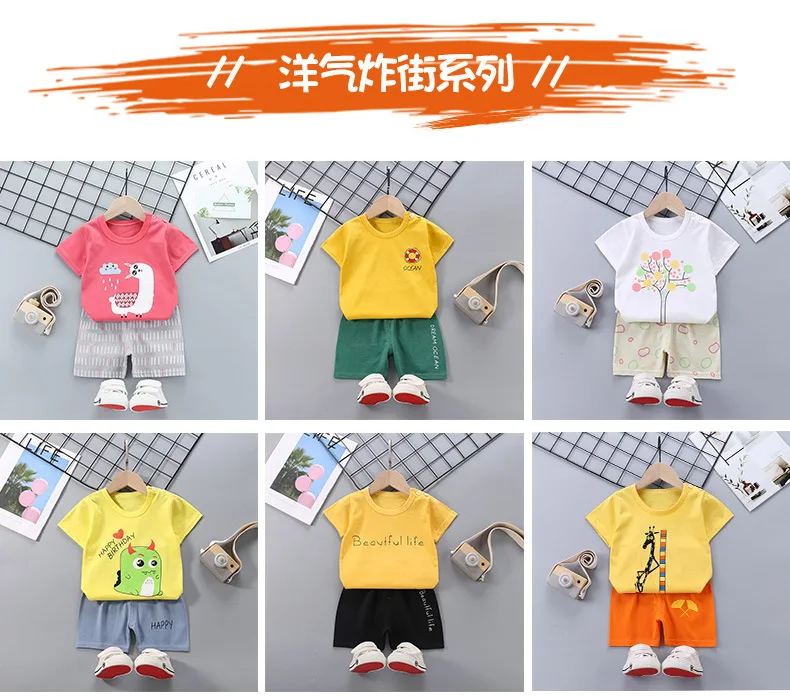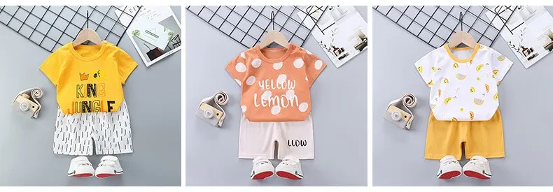 Детский летний костюм с коротким рукавом, комплект одежды для мальчиков и девочек, повседневные шорты с коротким рукавом для младенцев, комплект детской одежды из двух предметов