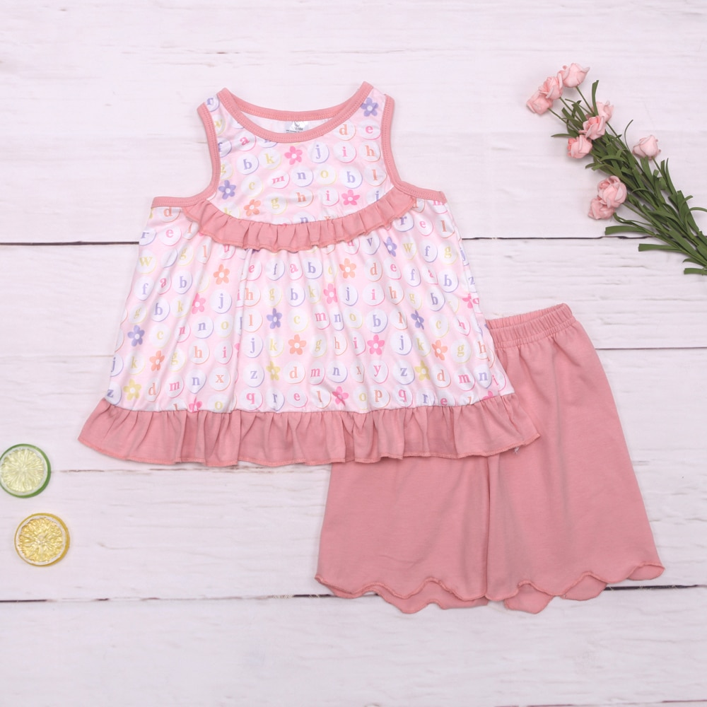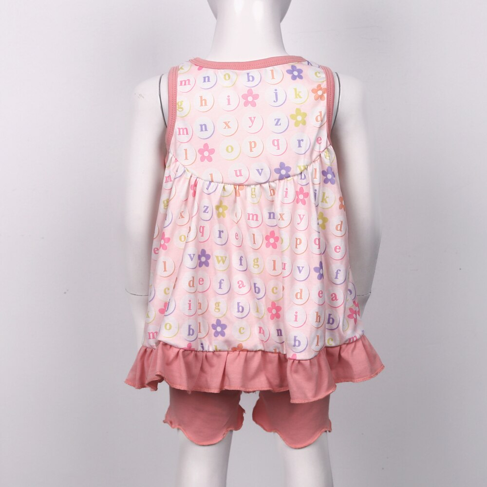 Снова в школу комплект одежды для маленьких девочек, летнее боди с буквенным принтом, Детский костюм, детская одежда, розовый бант 1-8TBebes, наряды