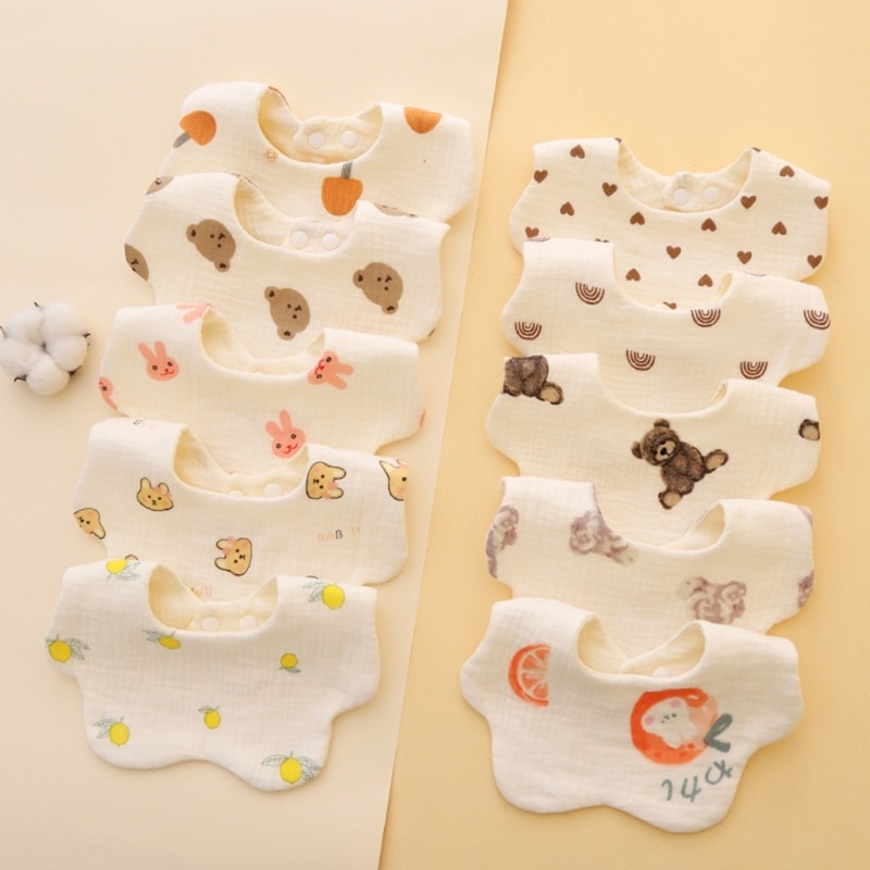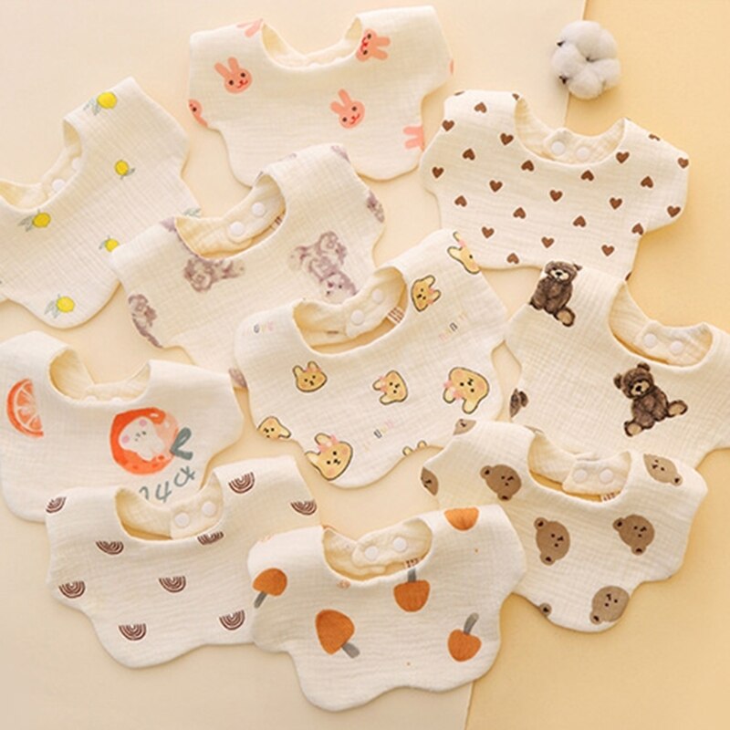 Дружественный для кожи Материал: слюнявчик использует квалифицированный марлевый хлопок, нетоксичный запах, мягкий и приятный для кожи, который удобно носить, дышащий материал и мультяшный принт, с идеальными характеристиками.