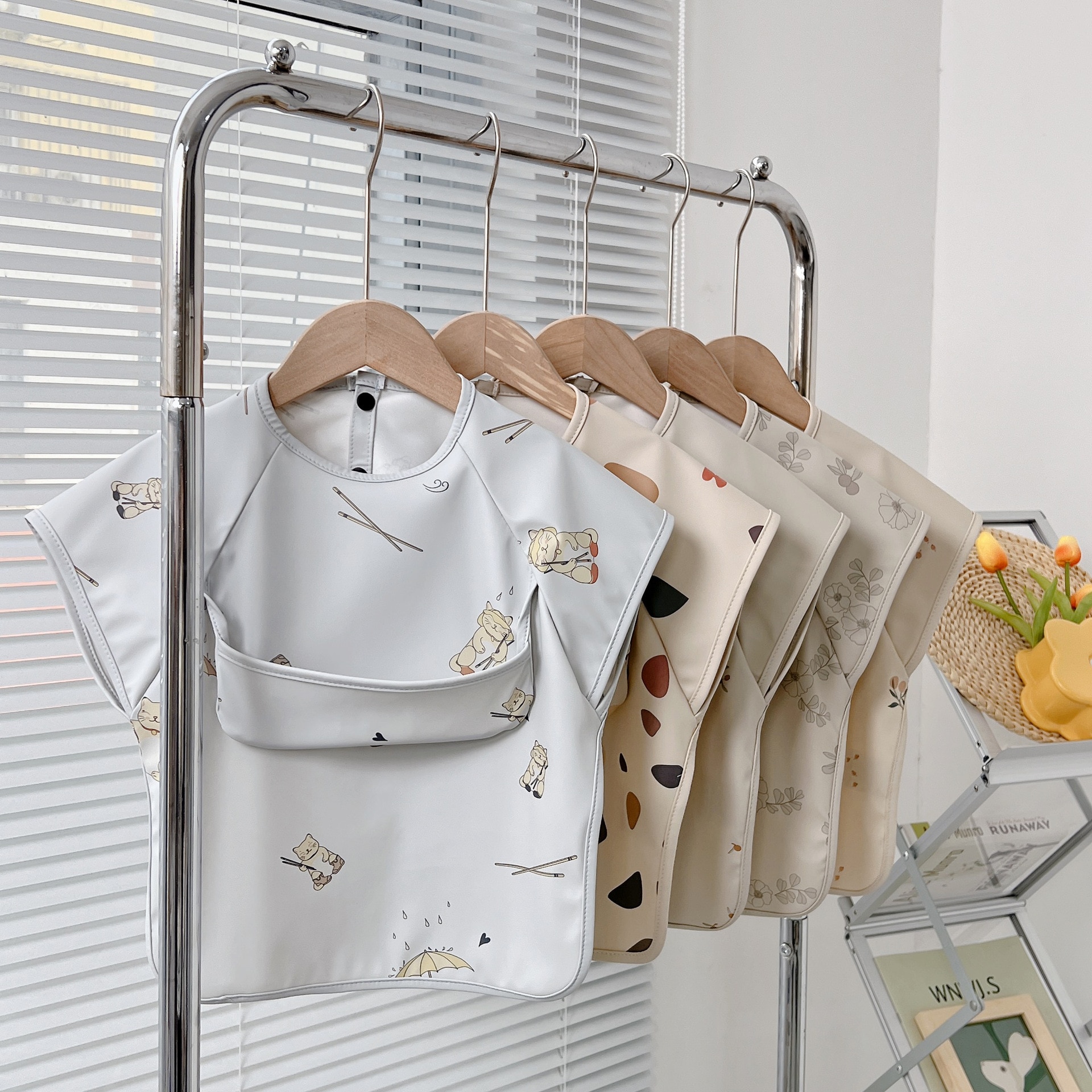 Детский непромокаемый слюнявчик из ПУ кожи, легко моющийся, с карманом
