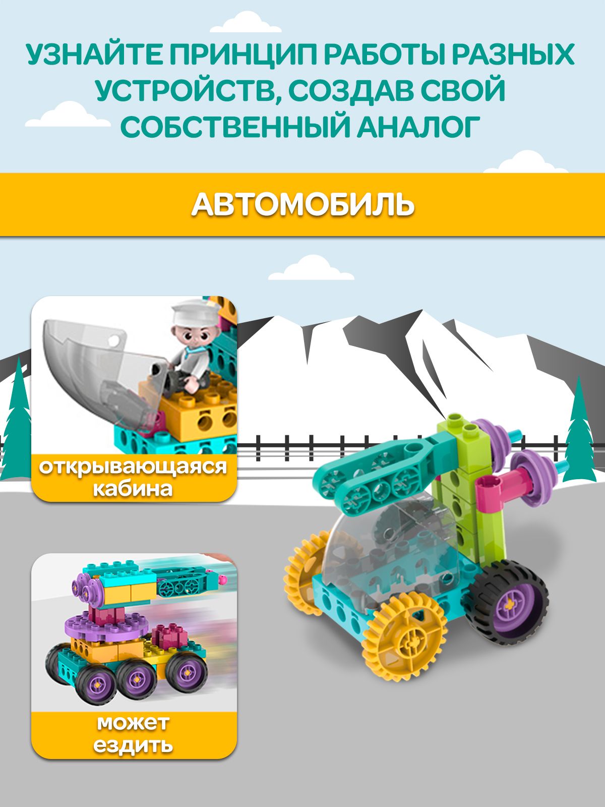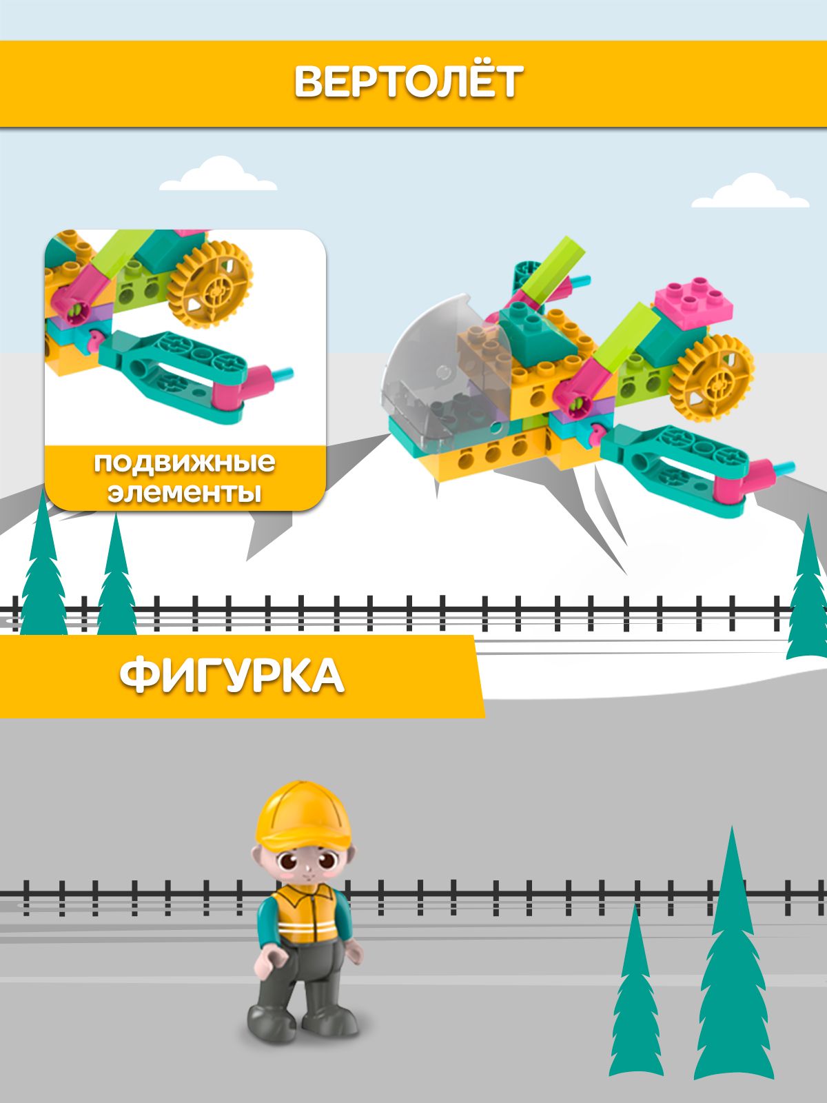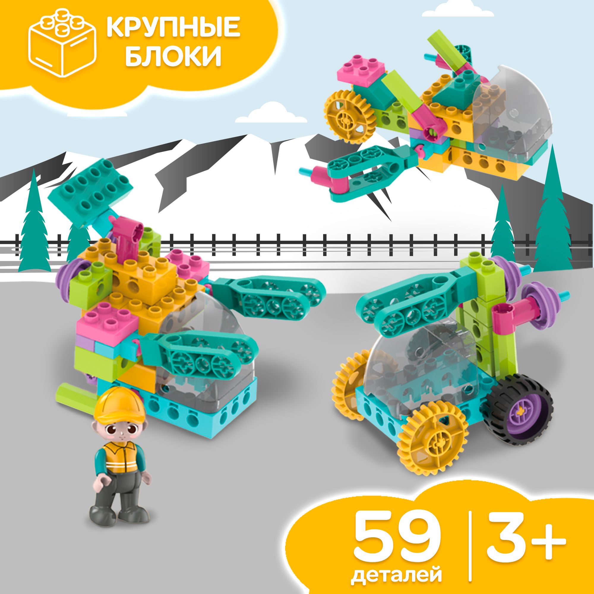 Описание: Детский пластиковый конструктор WiMi, развивающий набор строительной техники из крупных блоков с фигуркой рабочего для мальчиков от 3 лет, 59 деталейДетский пластиковый конструктор – это развивающий набор, который научит ребенка конструировать, моделировать и создавать. Конструктор для малышей – никогда не надоест ребенку, так как из него можно собирать самое разнообразное: дома, спецтехнику, трансформеров и много другое. Блочный конструктор развивает: Мелкую моторику. Модули конструктора небольшие и требуют четких действий - учит концентрироваться и улучшает координацию движений. Пространственное и логическое мышление. Объемная сборная модель помогает совершенствовать пространственное мышление. Воображение и зрительное восприятие. Игры с уже собранными машинками расширяют кругозор и дают возможность придумать новые сюжеты и сценарии для персонажей. Набор состоит из 59 крупных деталей с помощью которых можно создать разнообразные сооружения и транспорт с вращающимися элементами: вертолет или автомобиль с открывающейся кабиной. Собирая конструктор ребенок научится разбираться в механизмах и начнет понимать, как они работает. Чтобы сделать игру увлекательнее, вы можете купить дополнительные наборы блоков из серии. Они позволят создать целый город, придумывать захватывающие сюжетные истории из роботов и спецтехники со сложными механизмами. Большие детали конструктора без острых углов выполнены из качественного, безопасного для здоровья пластика. Для хранения предусмотрен пластмассовый бокс с крышкой и подробная книга инструкция по сборке в картинках. Развивающие игрушки в виде блочного конструктора станет идеальным подарком для ребенка на день рождения, новый год или любой праздник для мальчиков и девочек. Конструктор робототехника совместим с многофункциональным развивающим детским столиком для конструирования WiMi, который поможет воспитать у ребенка интерес к обучению, творчеству, инженерным и естественным наукам. Соберите всю серию конструкторов WiMi. Переходите в каталог и оформляйте заказ.Вам также понравится!В каталоге нашего бренда WiMi Вы найдете ещё больше интересных товаров!510358776563524118313516041523879541341244361732067067510358691799281606318640881615043752324220899564542373
