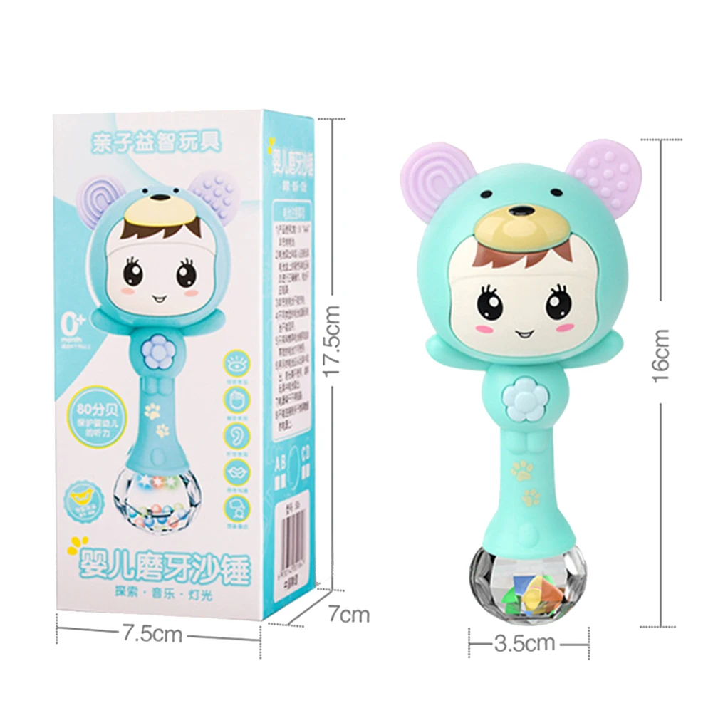 Характеристики: Нажмите кнопку, при каждом встряхивании игрушки производится одна музыкальная нота, и она станет красивой песней. Светильник меняется в соответствии с ритмом и имеет переливающийся эффект после преломления задних прозрачных шариков. Уши изготовлены из мягкой и эластичной гуттаперчи, безопасны для укуса и облегчают боль ребенка. Хороший подарок в качестве обучающей игрушки. 1. Тип товара: ручная погремушка Материал: пластик + электронные компоненты Возрастной диапазон: > 0 месяцев Источник питания: 2 батарейки AAA (не входят в комплект) Особенности: мультяшный дизайн, Прорезыватель для зубов, мигающий светильник, излучающая музыку Размер: 7,5x7x17,5 см/2,95x2,76x6,89 дюйма (прибл.) 2. Источник питания: 3 батарейки типа ААА (не входят в комплект) Особенности: конструкция барабана, мультяшный стиль, с музыкой и светильник Том, прорезыватель Размер: 16 см x 3 см x 8 см/6,30 дюйма x 1,18 дюйма x 3,15 дюйма (прибл.) 3. Цвет: Случайный Особенности: мягкая, развивающая игрушка, колокольчик, нетоксичный Длина: 12,5 см/4,92 дюйма (прибл.) Ширина: 6,2 см/2,44 дюйма (прибл.) Примечания: Запрещается использовать сильную щелочную батарею. Из-за разницы в освещении и настройках экрана цвет изделия может немного отличаться от изображения. Возможны незначительные различия в размерах из-за различий в измерениях вручную. Посылка входит: 1 х ручная погремушка