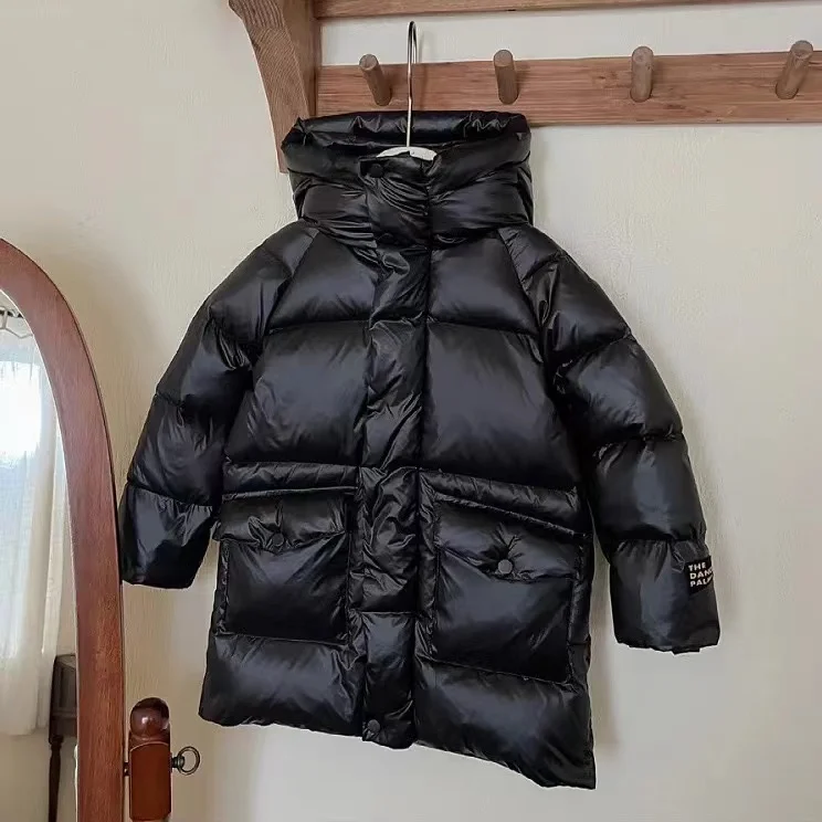 Детский пуховик черного и золотого цвета, детская утепленная куртка средней длины, хлопковая куртка для мальчиков и девочек, верхняя одежда для детей