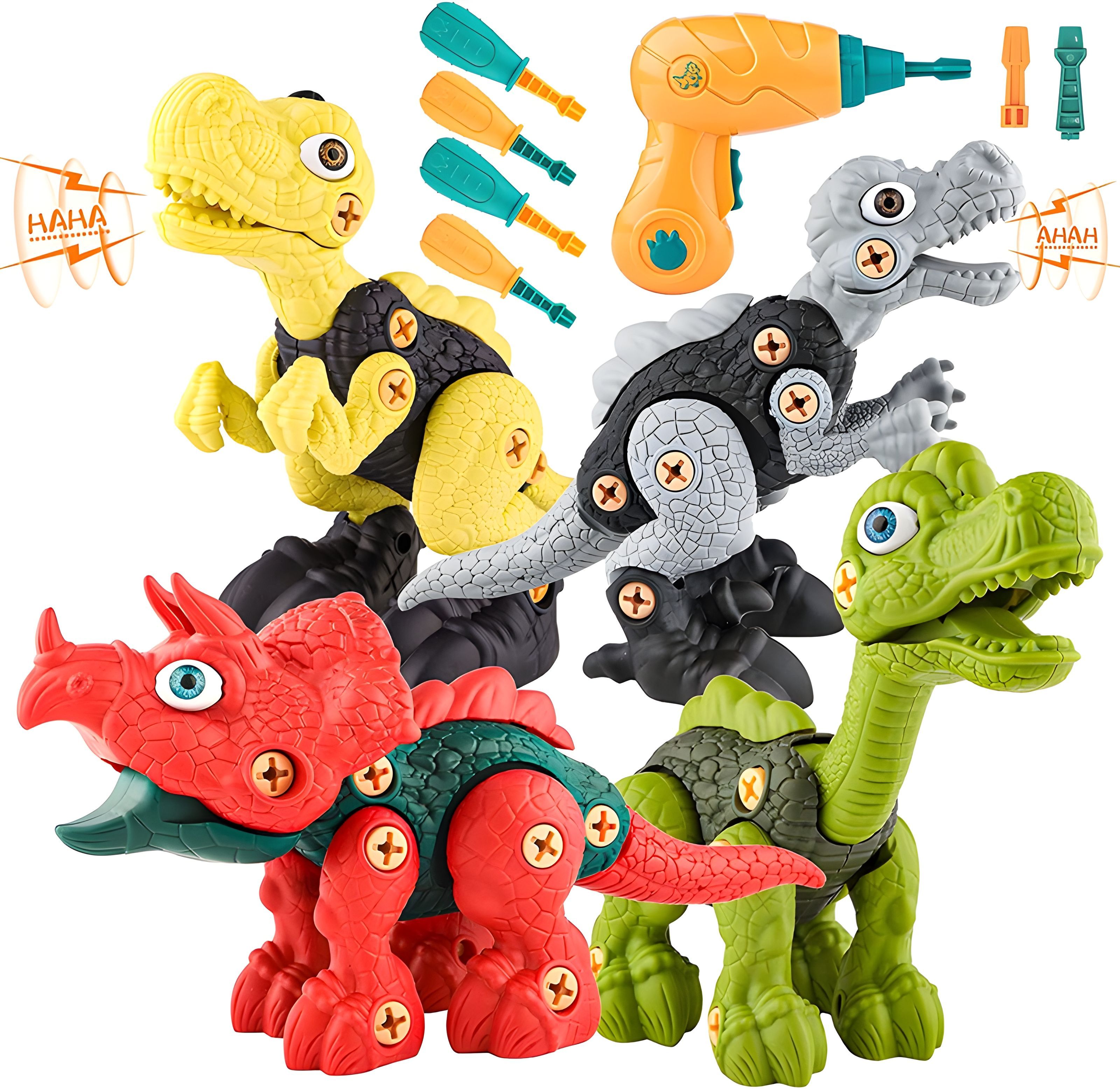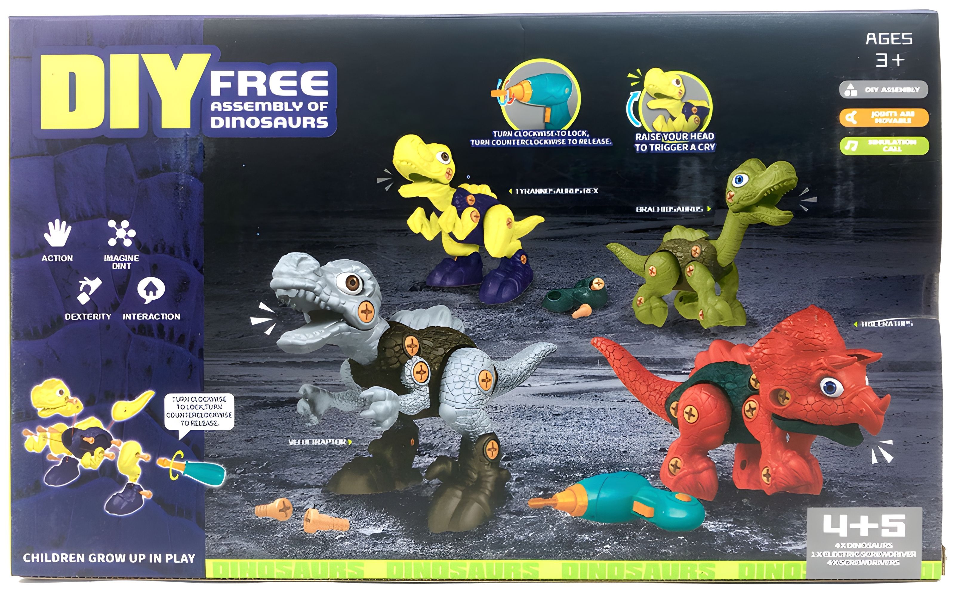 Детский развивающий конструктор, 4 динозавра на шурупах, отвёртка, шуруповёрт, динозавр-конструктор, подвижные элементы, со звуковыми эффектами, 30х18х16 см