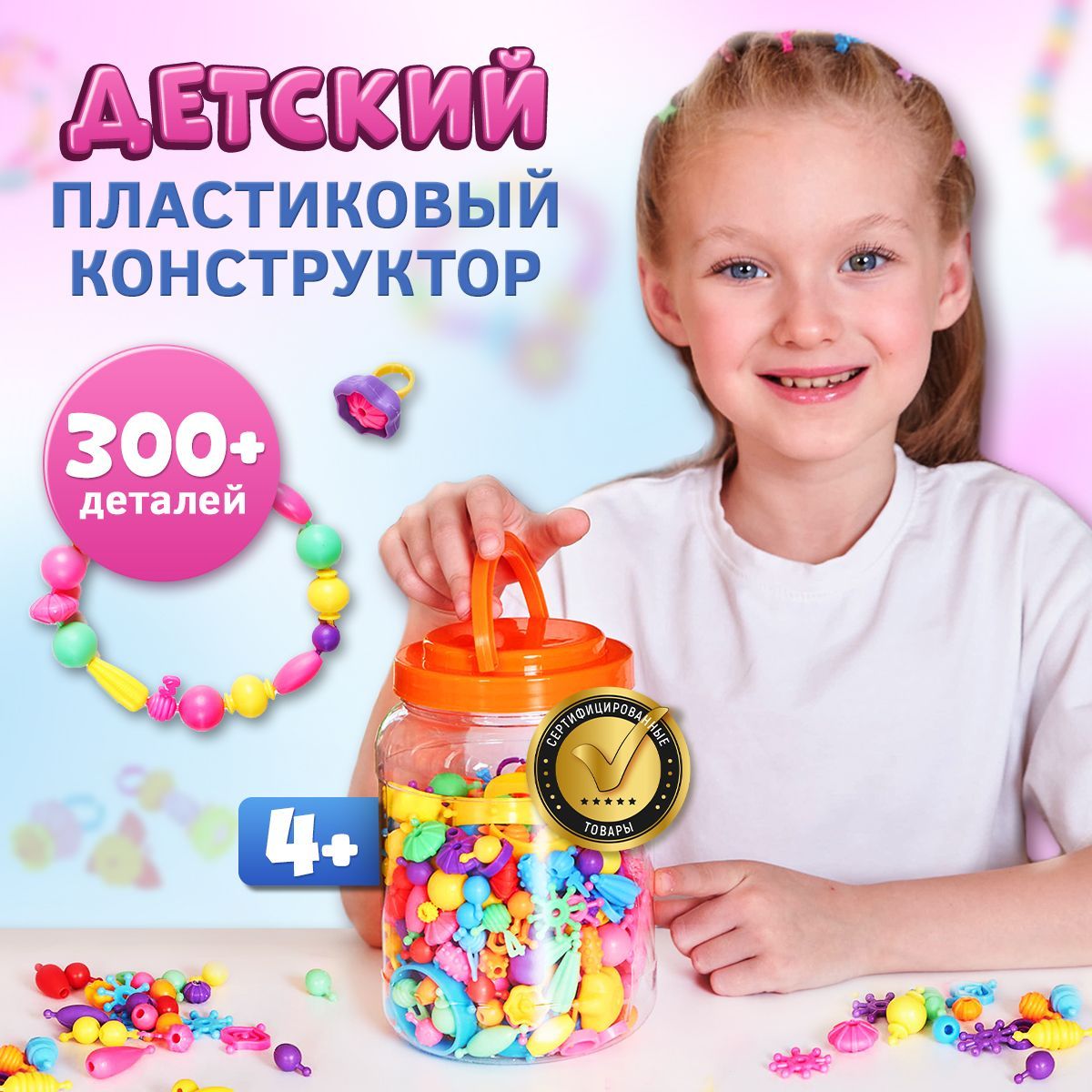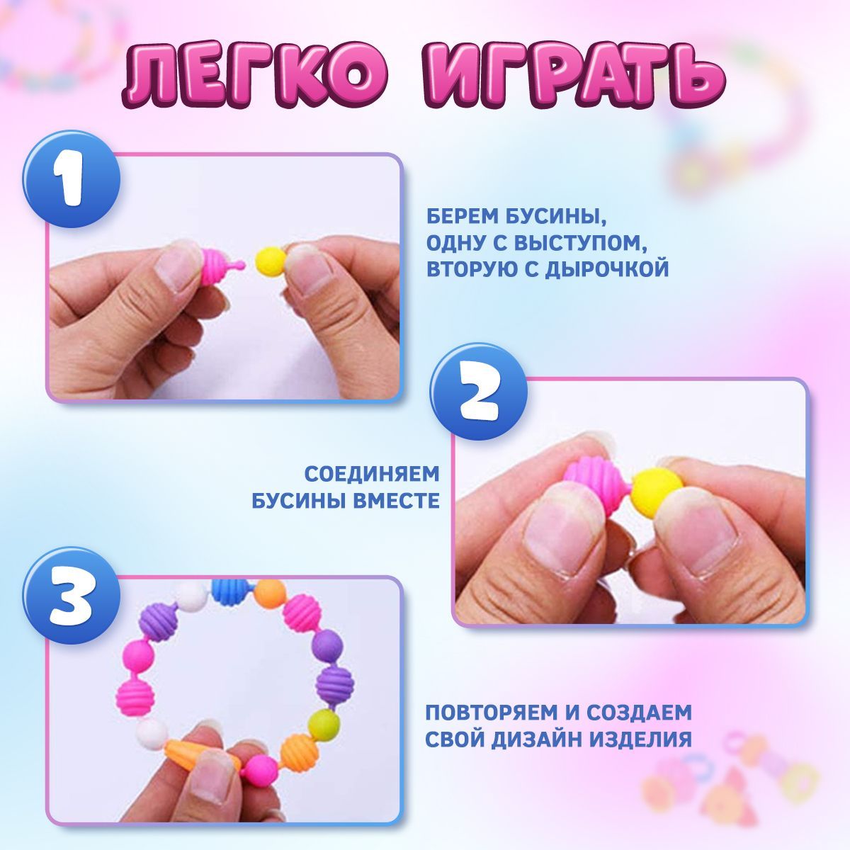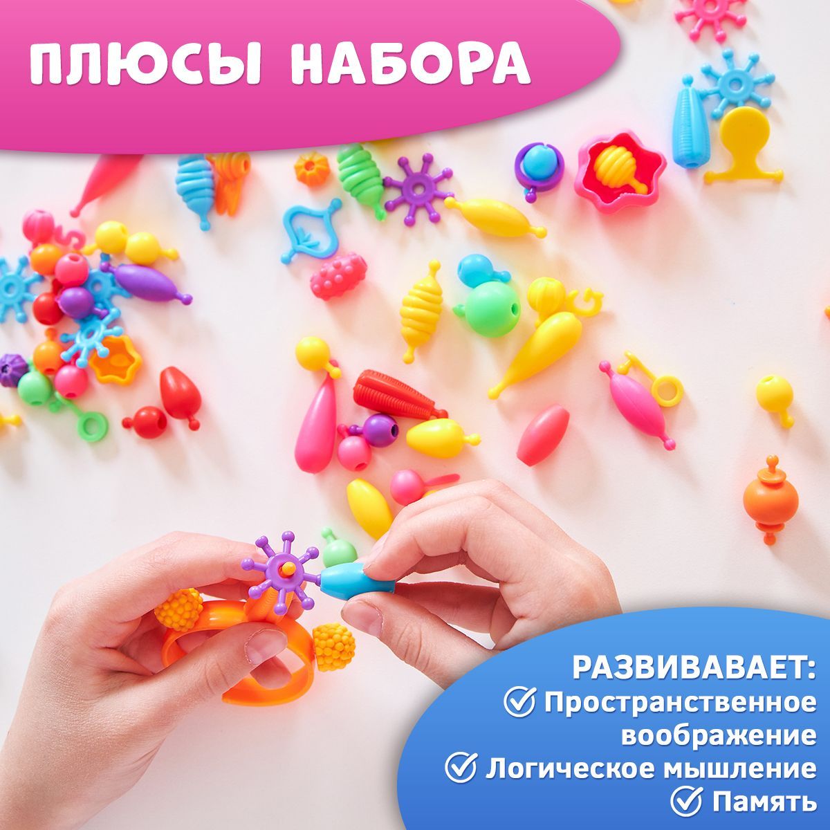 Детский развивающий пластиковый конструктор для мальчиков и девочек Pop-Beads 300 деталей Kiddmir