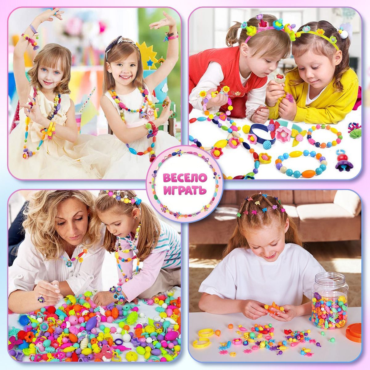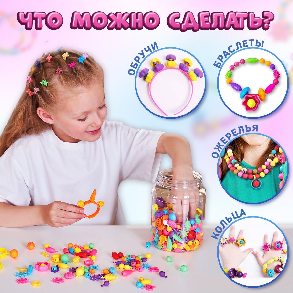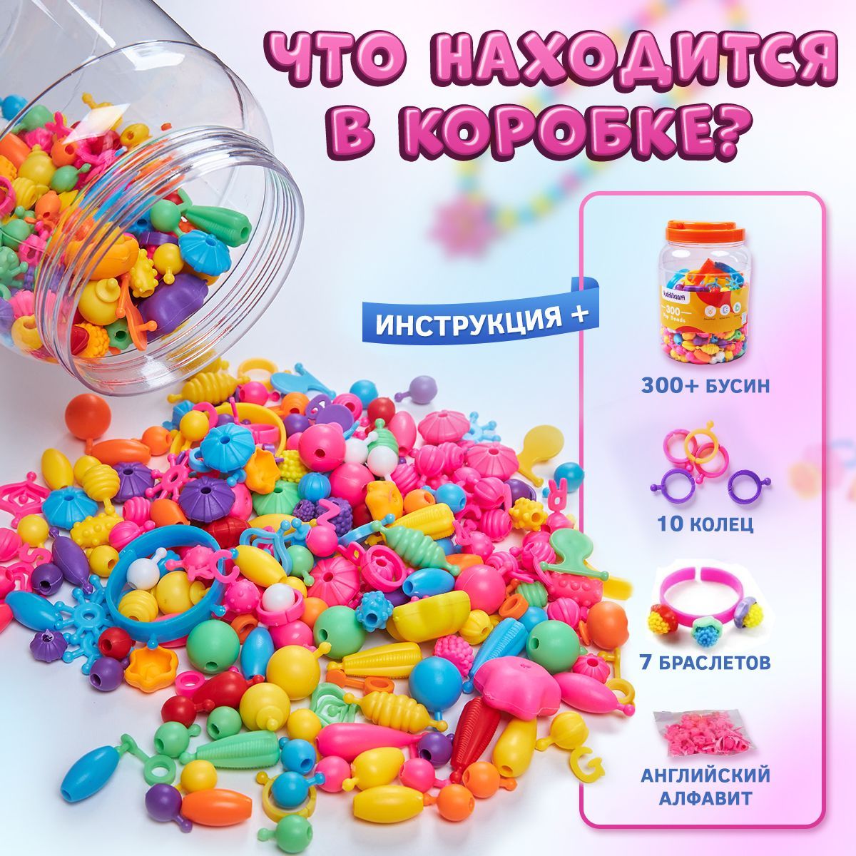 Детский развивающий пластиковый конструктор для мальчиков и девочек Pop-Beads 300 деталей Kiddmir