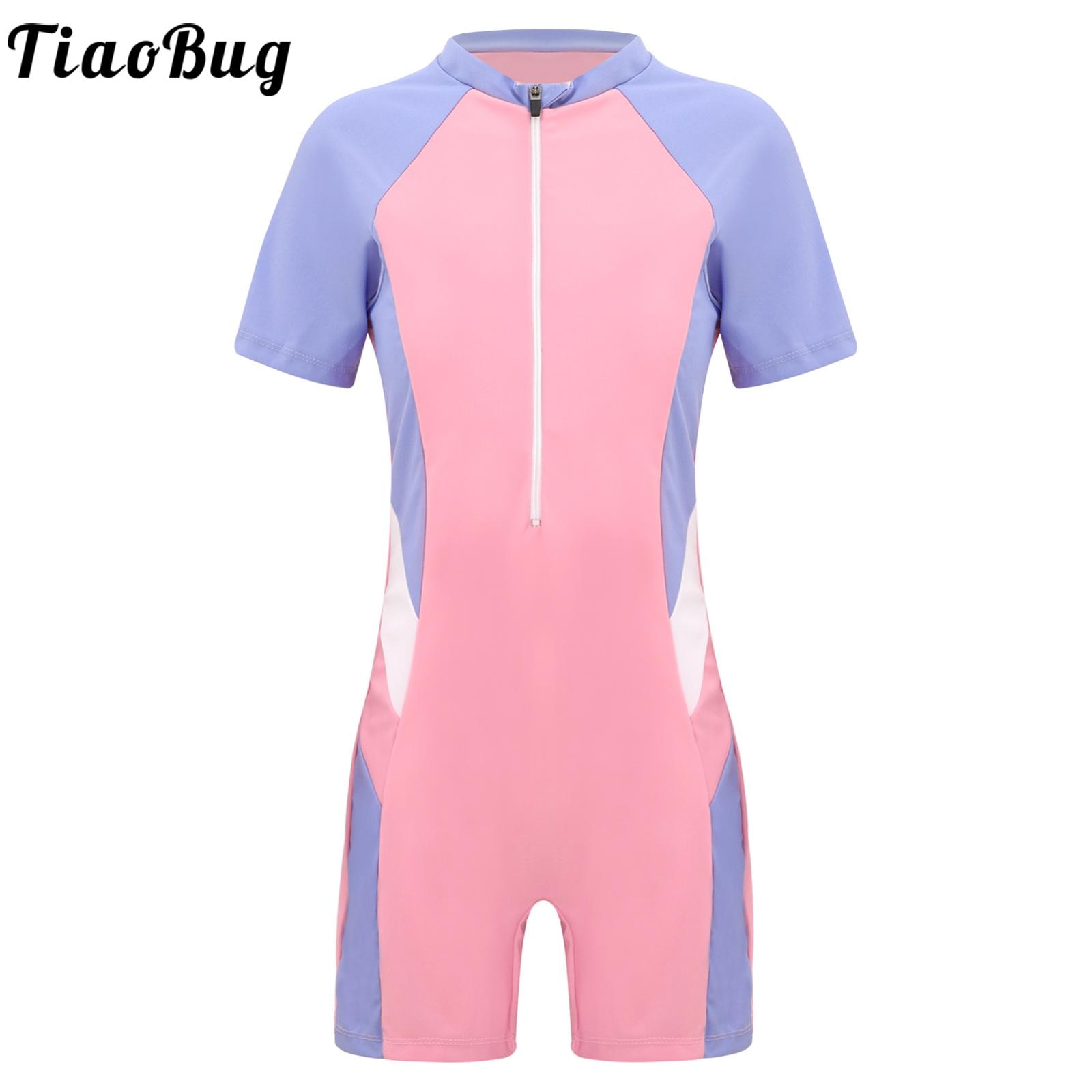 Детский слитный купальник для девочек, комбинезон с коротким рукавом в стиле пэчворк, купальный костюм для серфинга, пляжная одежда для бассейна, одежда для плавания, спортивная одежда