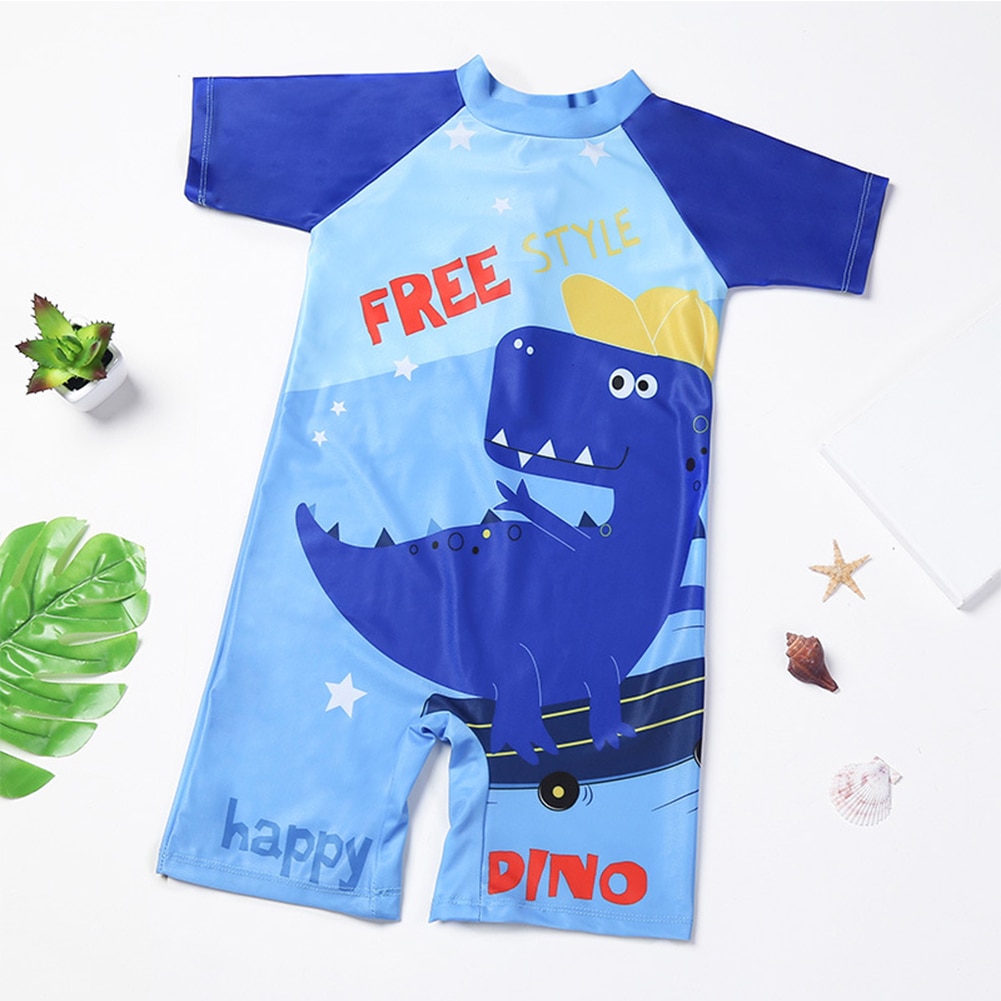 Детский слитный купальник с милым мультяшным принтом и коротким рукавом, удобный дышащий Быстросохнущий купальник, пляжная одежда для плавания
