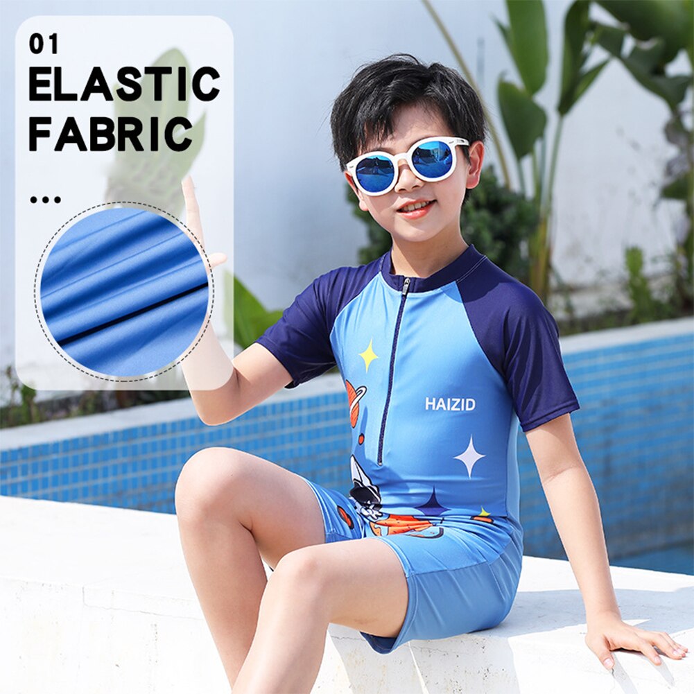 Детский слитный купальник с милым мультяшным рисунком и коротким рукавом, удобный дышащий купальник, одежда для плавания и водных видов спорта