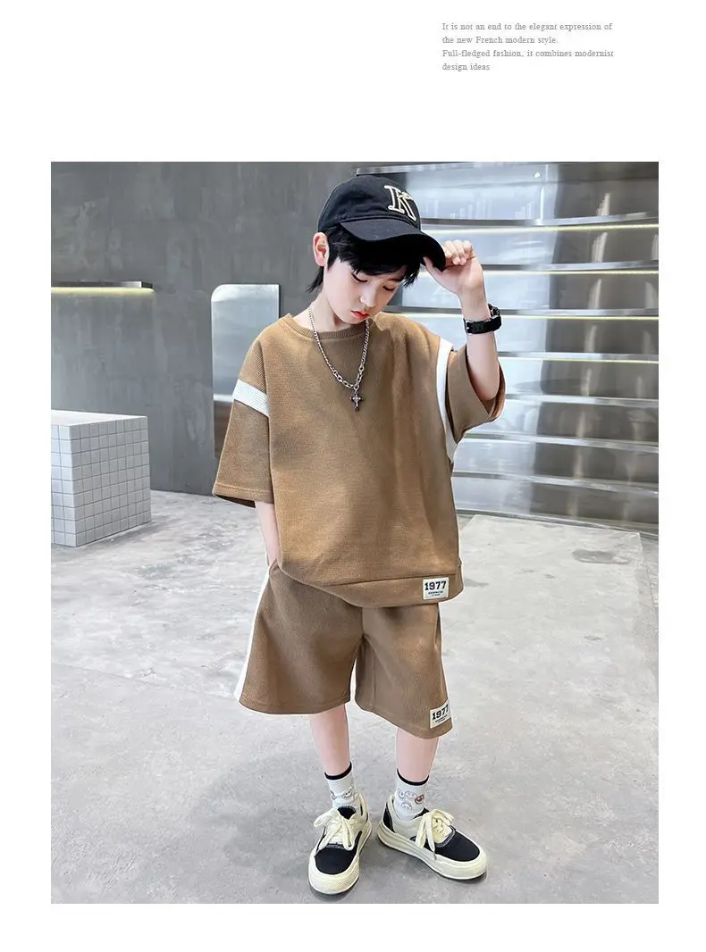 2023 летние хлопчатобумажные розовые футболки для девочек + контрастные белые брюки, школьный спортивный костюм, детский спортивный костюм, спортивный костюм для бега 5-16 лет