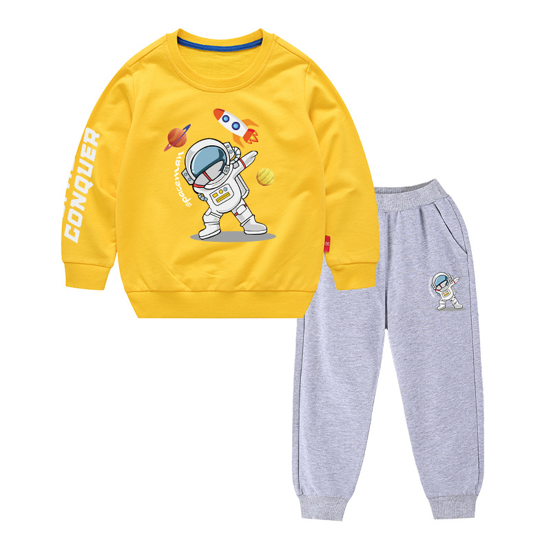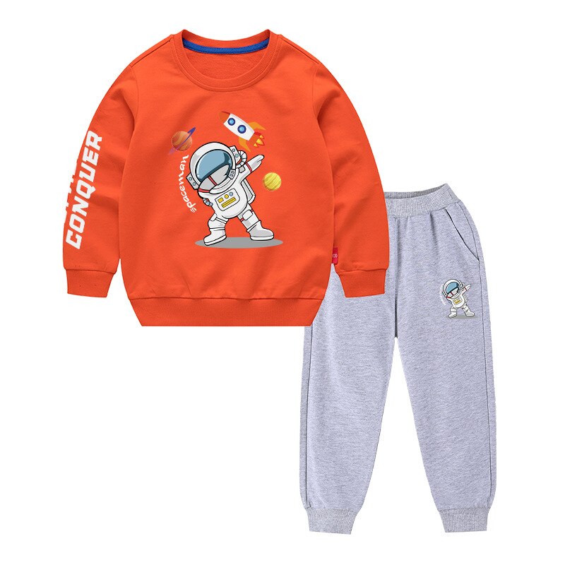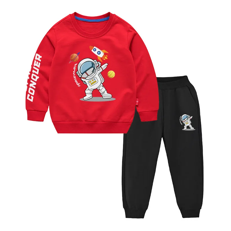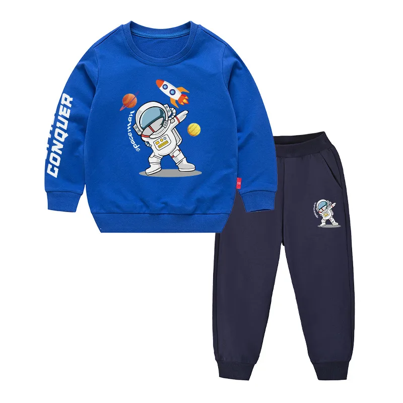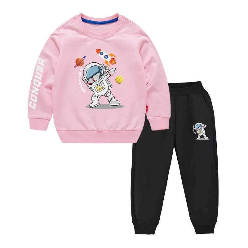 Детский спортивный костюм для мальчиков и девочек, модная кофта с длинным рукавом и спортивные штаны с принтом астронавта и надписью, зима 2023