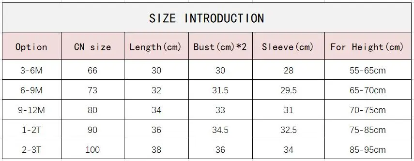Age for 3M 6M 9M 1T 2T 3T