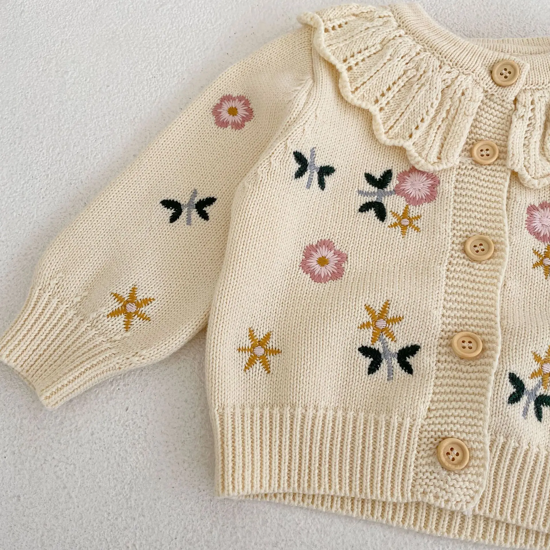 0-3 года кардиган с вышивкой цветов для маленьких девочек, Осенний Вязаный Кардиган с длинным рукавом и принтом, детские пальто для девочек