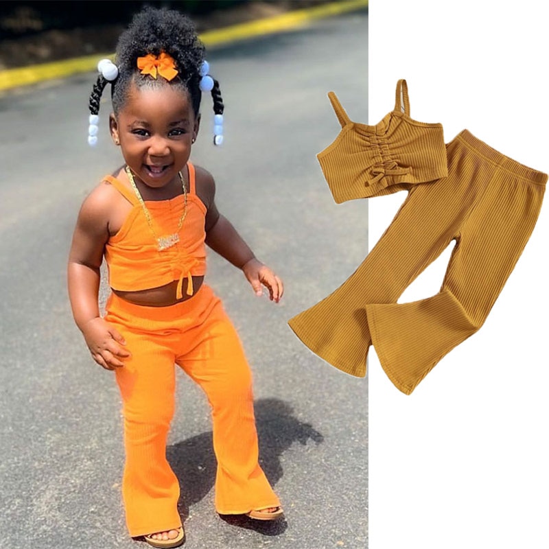 Детский винтажный спортивный костюм, трикотажный топ с бантом и леггинсы с расклешенной юбкой, комплект одежды из 2 предметов для девочек, Y2K, лето 2023