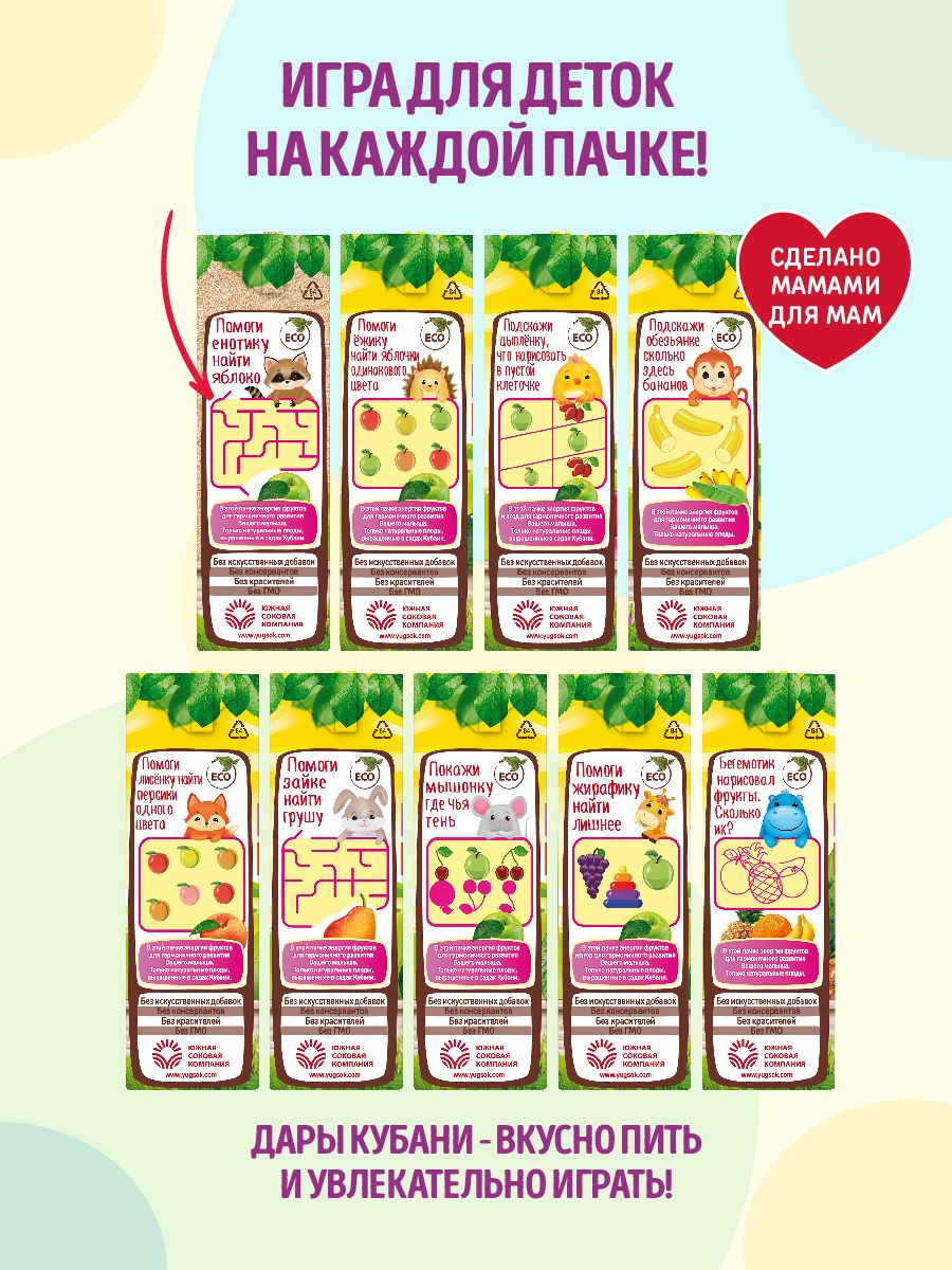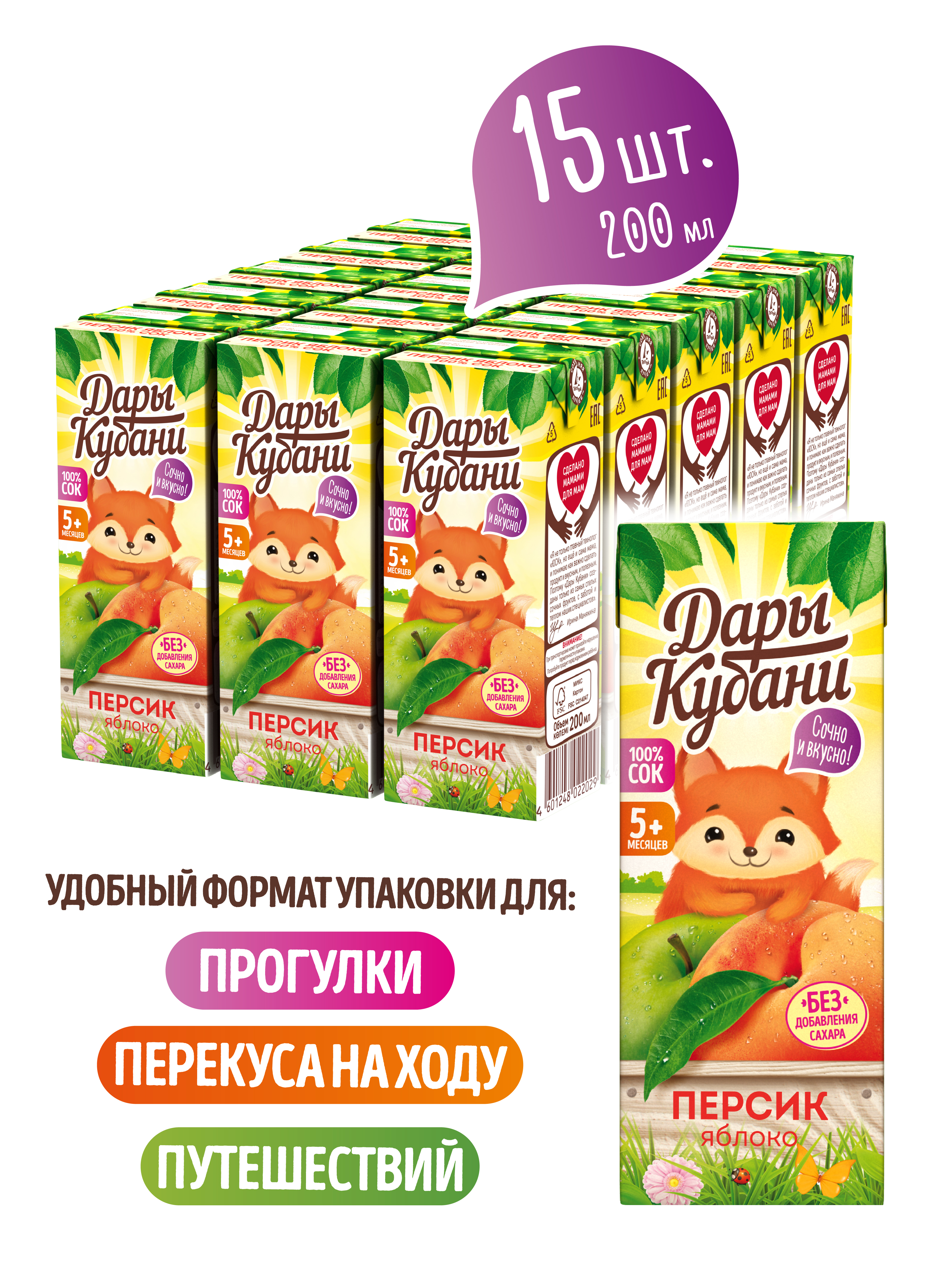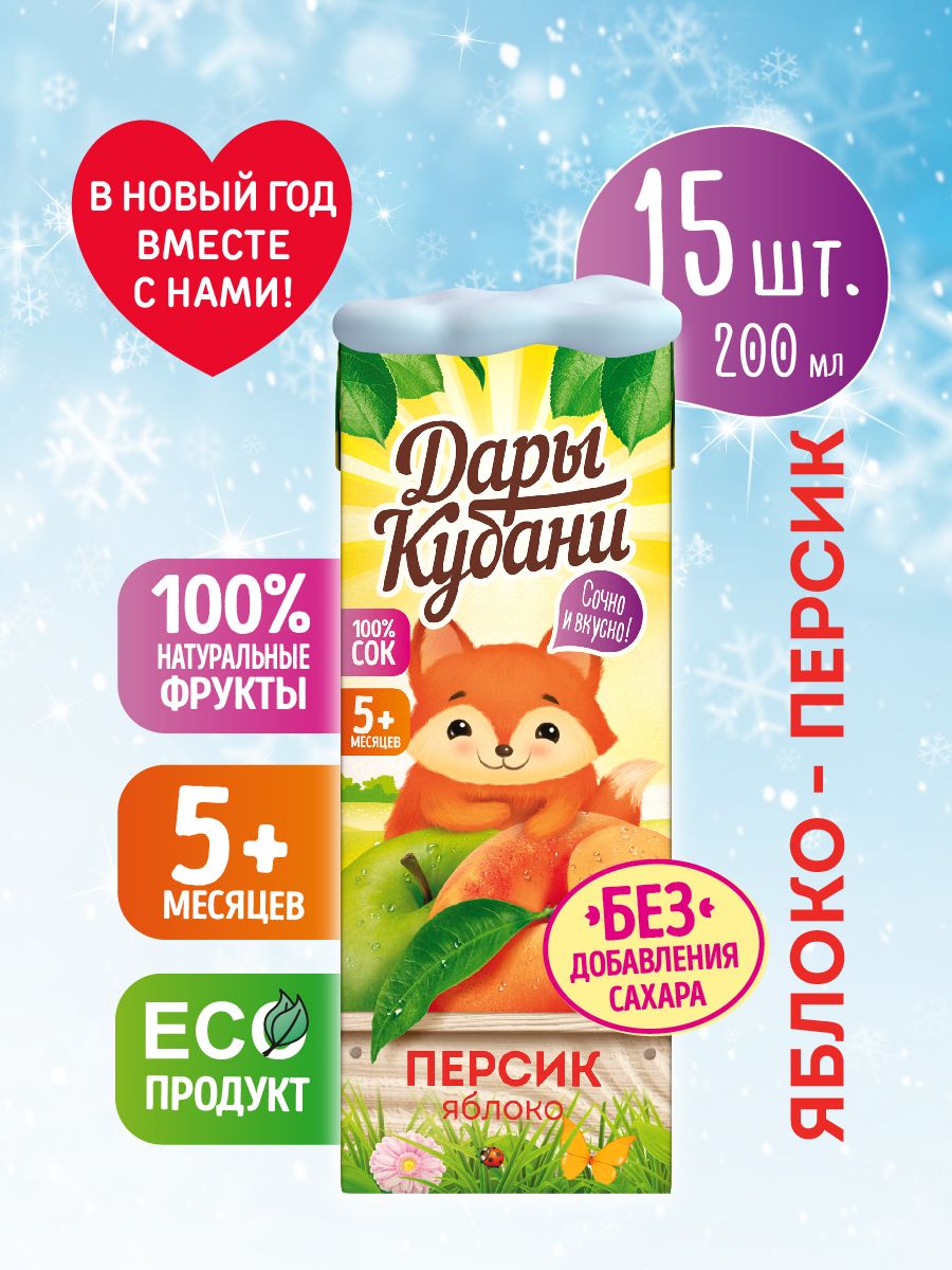 Детский яблочно-персиковый сок Дары Кубани, без сахара, с мякотью, для питания детей с 5 месяцев, 200 мл х 15 шт.