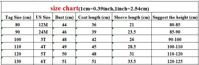 1. При выборе размера для вашего ребенка, вы можете выбрать в соответствии с размером таблицы в описании нашей продукции.