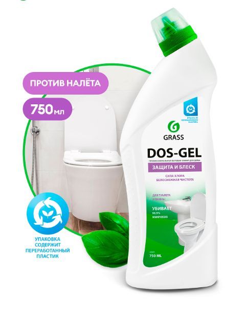 Дезинфицирующий чистящий гель Grass DOS GEL для туалета и ванной, 750 мл.