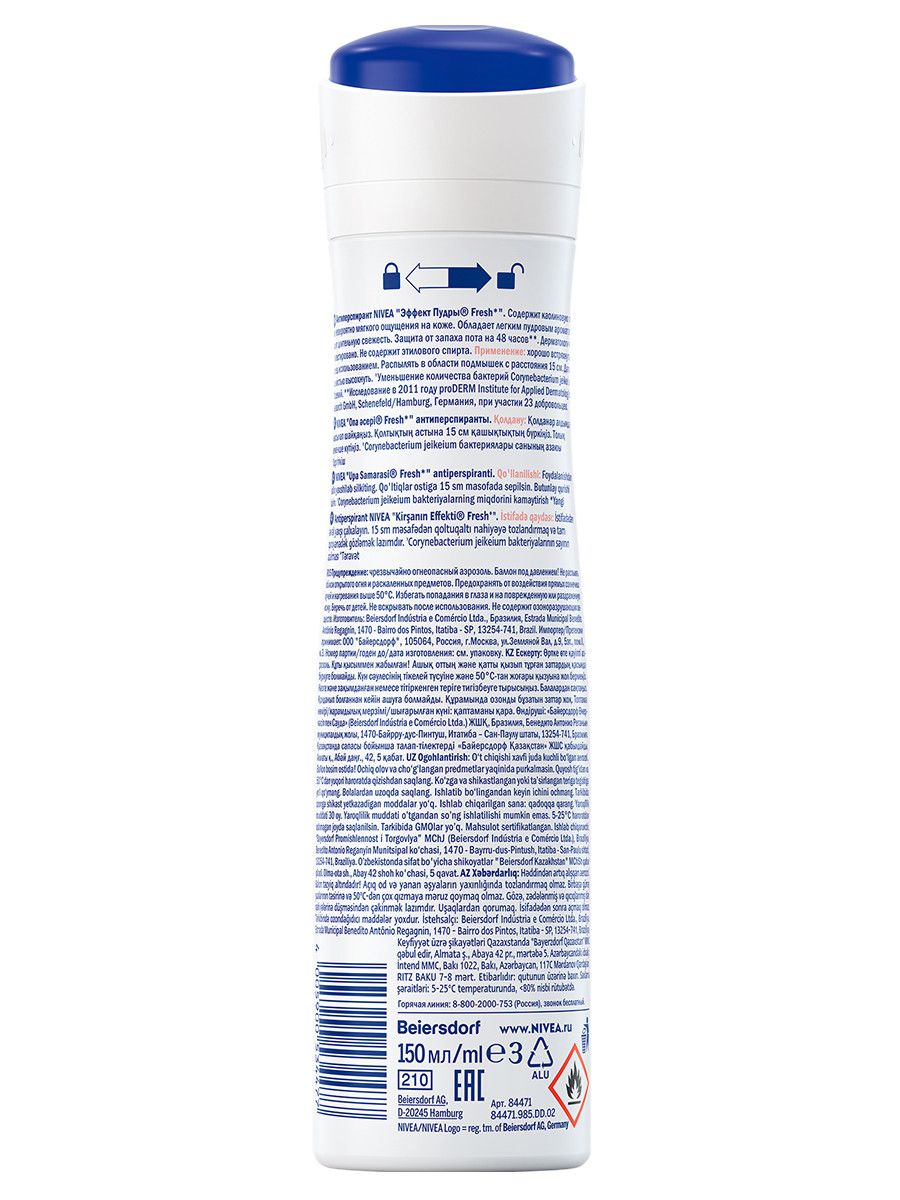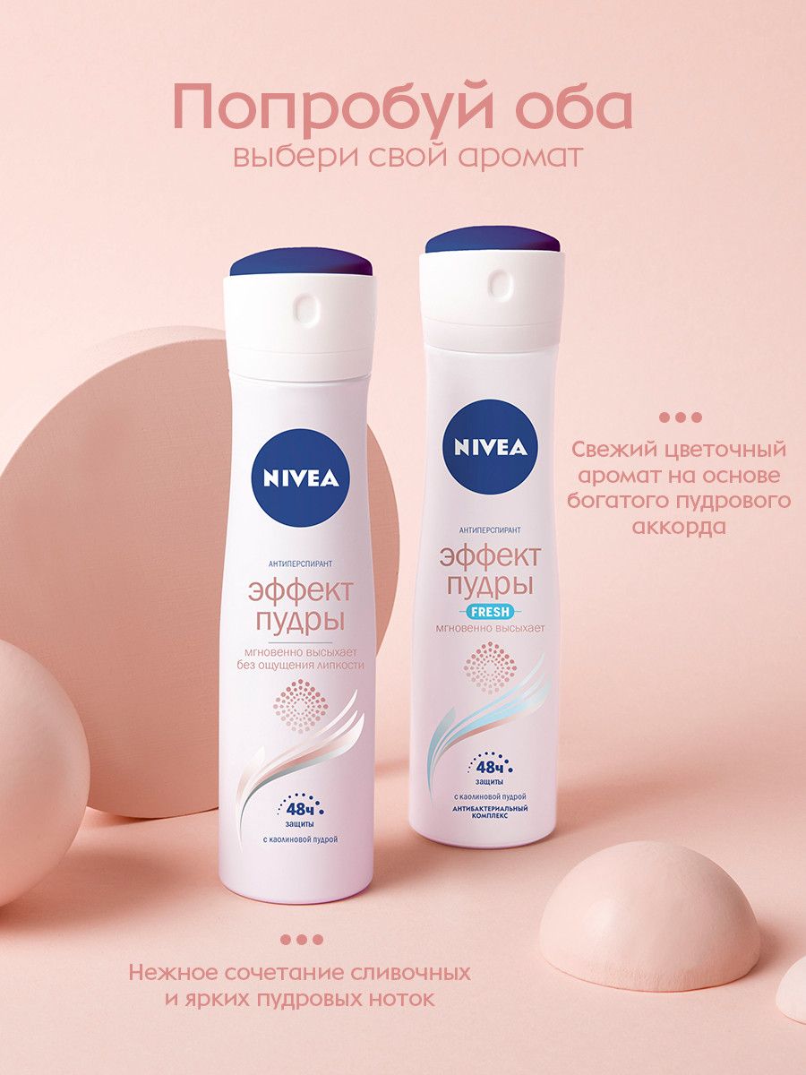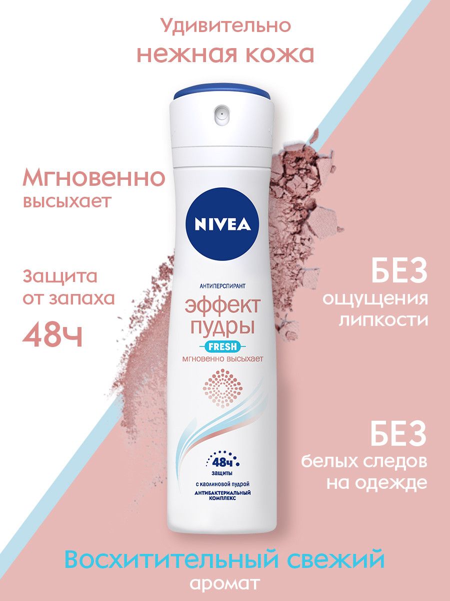 Дезодорант-антиперспирант спрей NIVEA Эффект Пудры Fresh антибактериальный комплекс, 150 мл