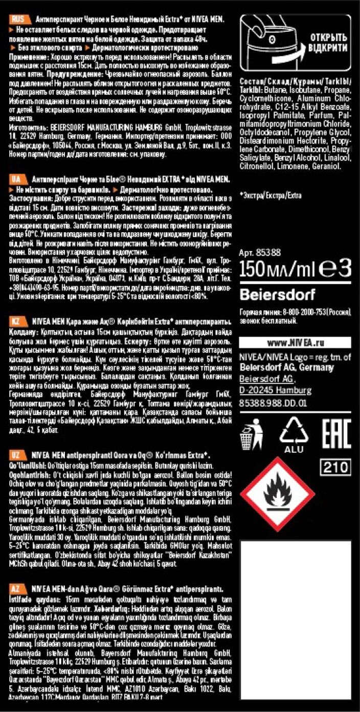 Дезодорант-антиперспирант спрей NIVEA Men Черное и Белое Невидимый EXTRA, 150 мл