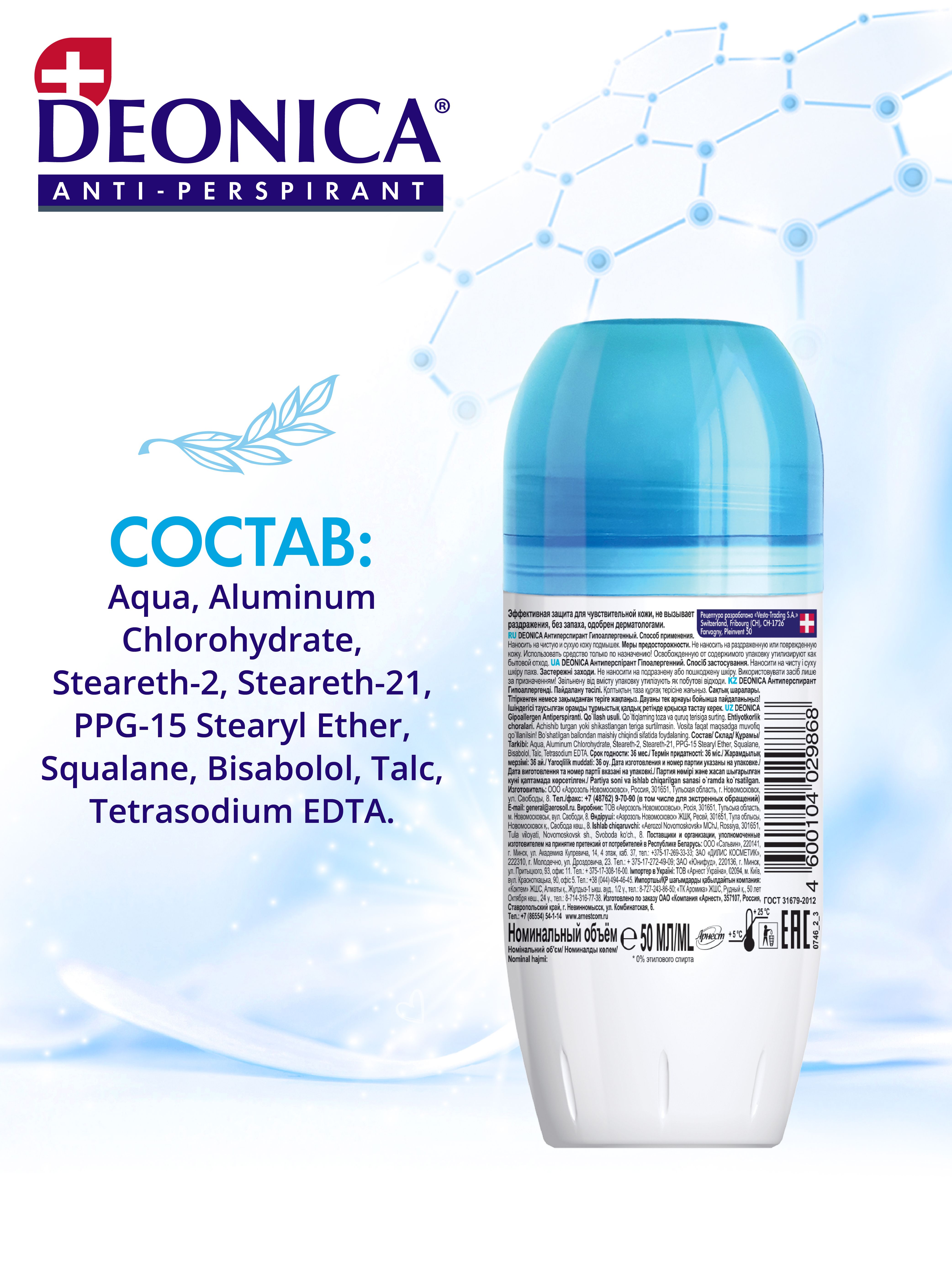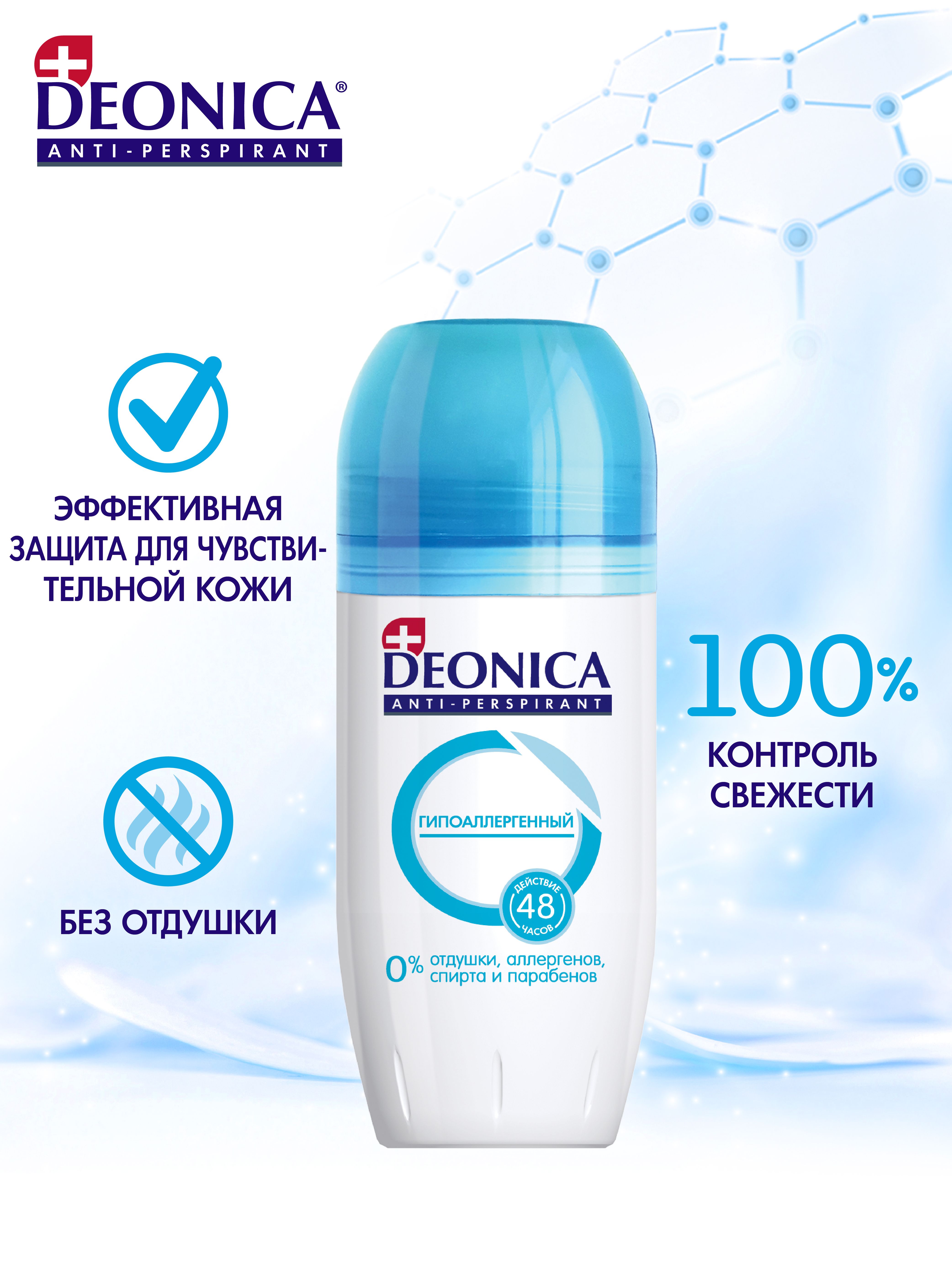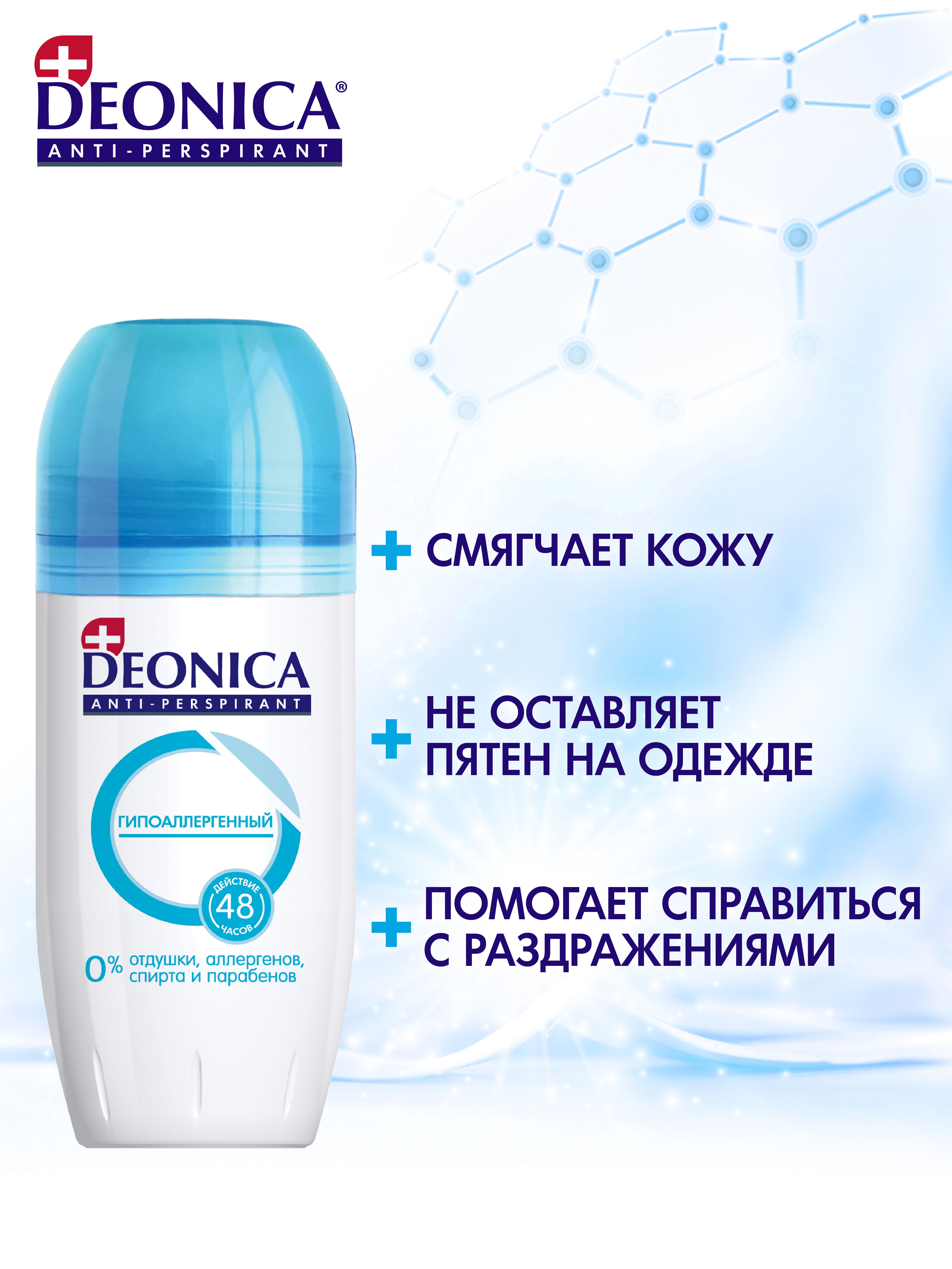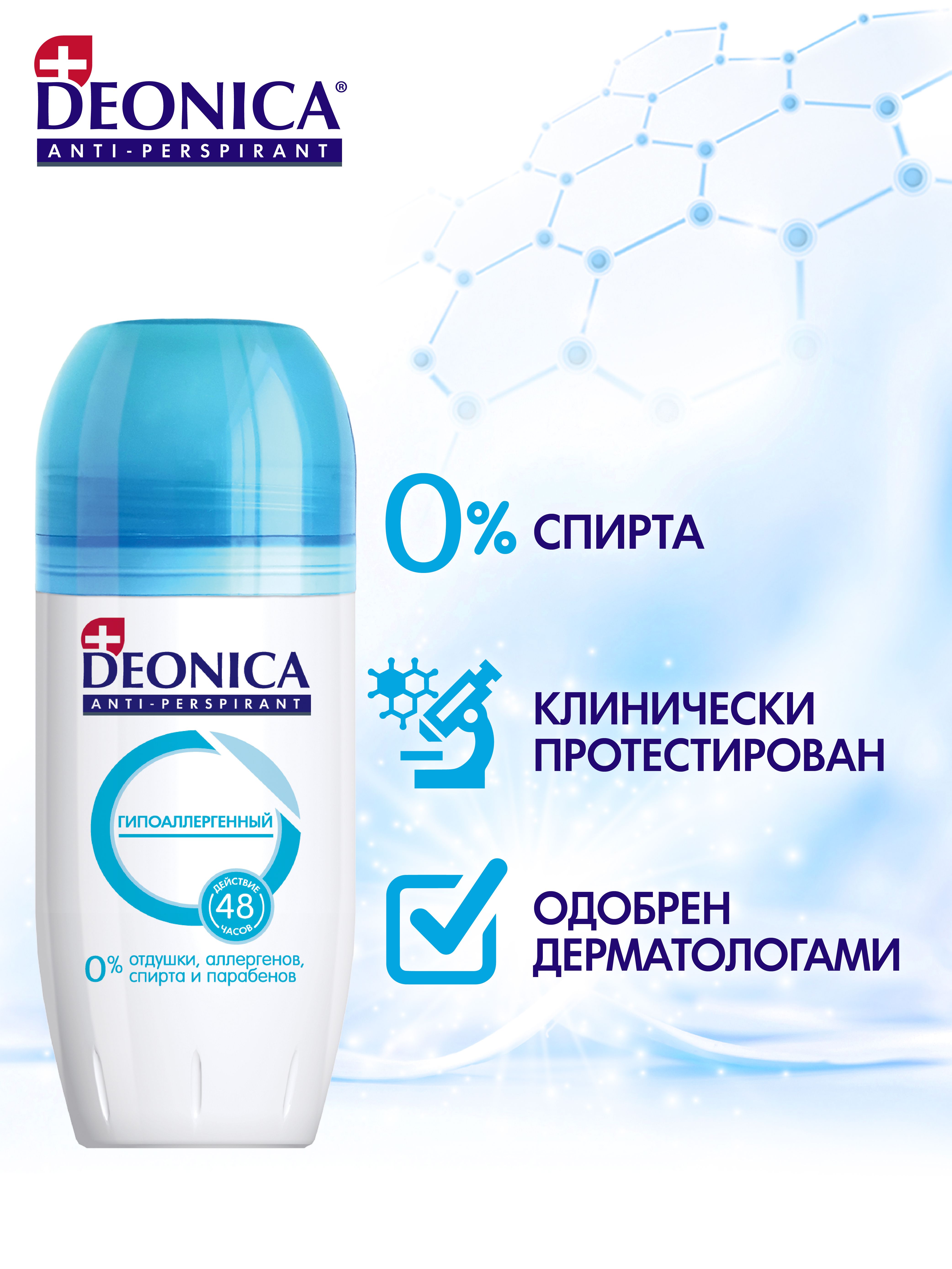 Дезодорант Деоника Антиперспирант Гипоаллергенный, для чувствительной кожи, шариковый - 50 мл