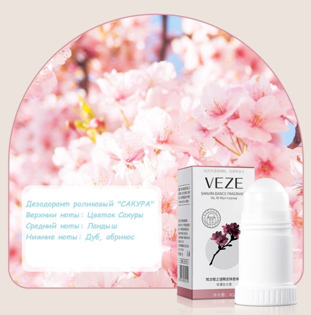 Описание: Дезодорант шариковый "Сакура"Сладкий и романтический аромат цветущей вишни, мягкое скольжение, легкий аромат, приятный уход за кожей, нейтрализует запах пота.