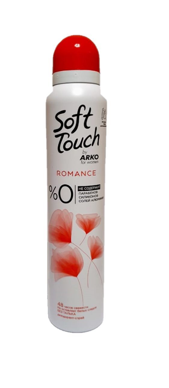 Soft Tach by Arko for women Romance – это нежная и сверхсильная защита на 48 часов, бережный уход за кожей и нежный романтичный аромат, удобная форма спрея.