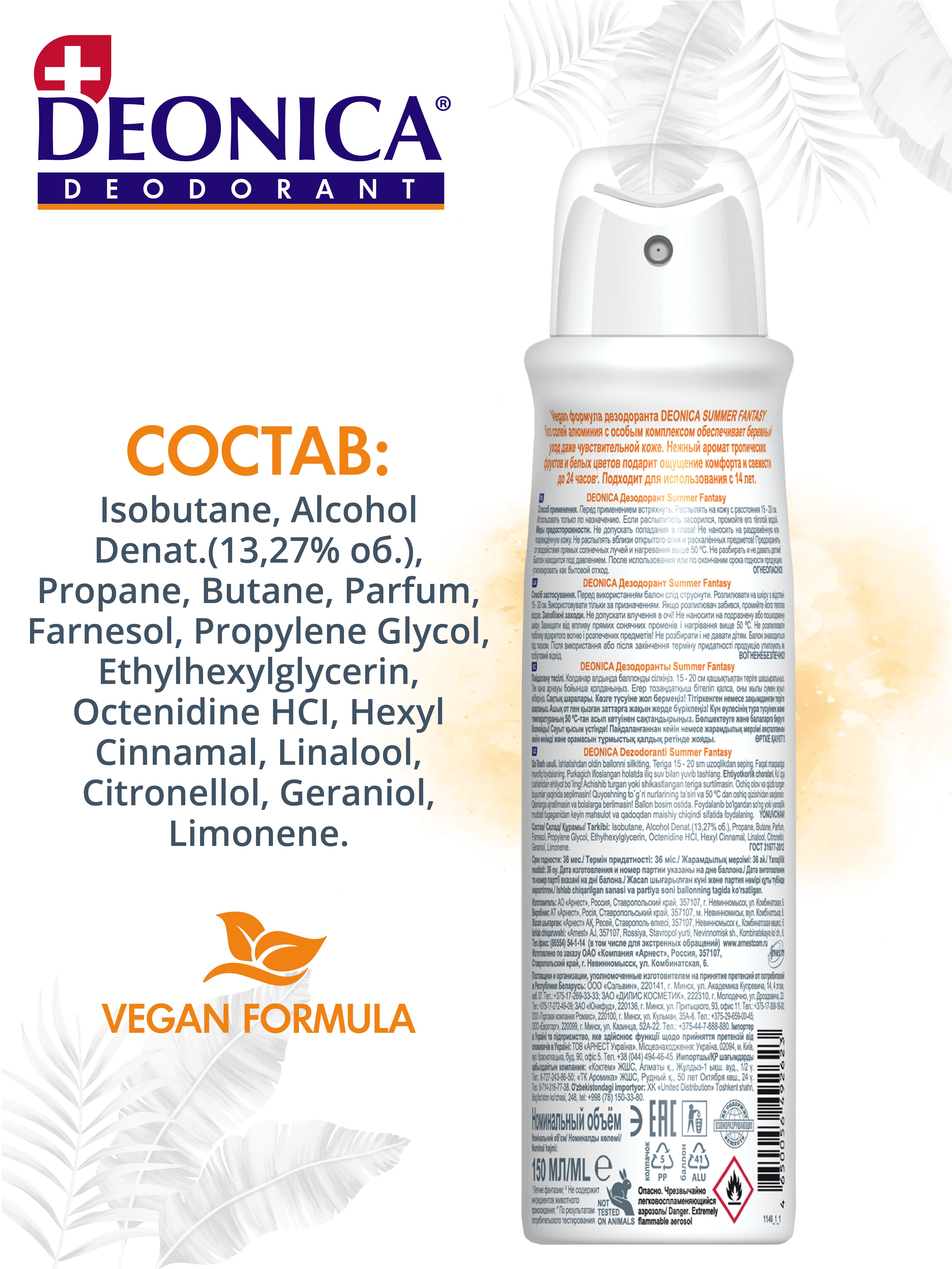 Дезодорант женский Деоника Summer Fantasy Vegan Formula, 150 мл