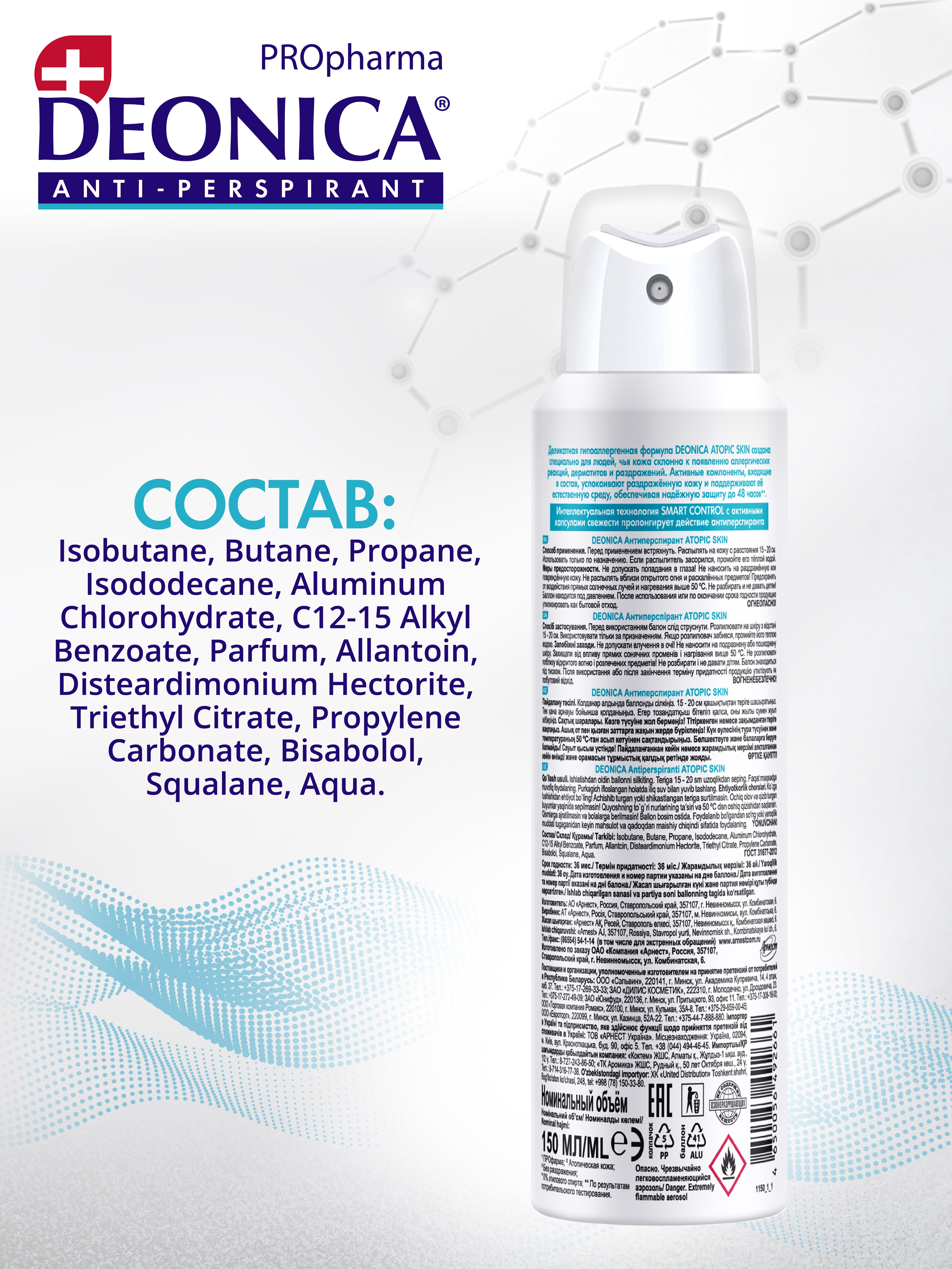 Дезодорант женский для атопической кожи Деоника Антиперспирант PROpharma Atopic Skin, спрей - 150 мл
