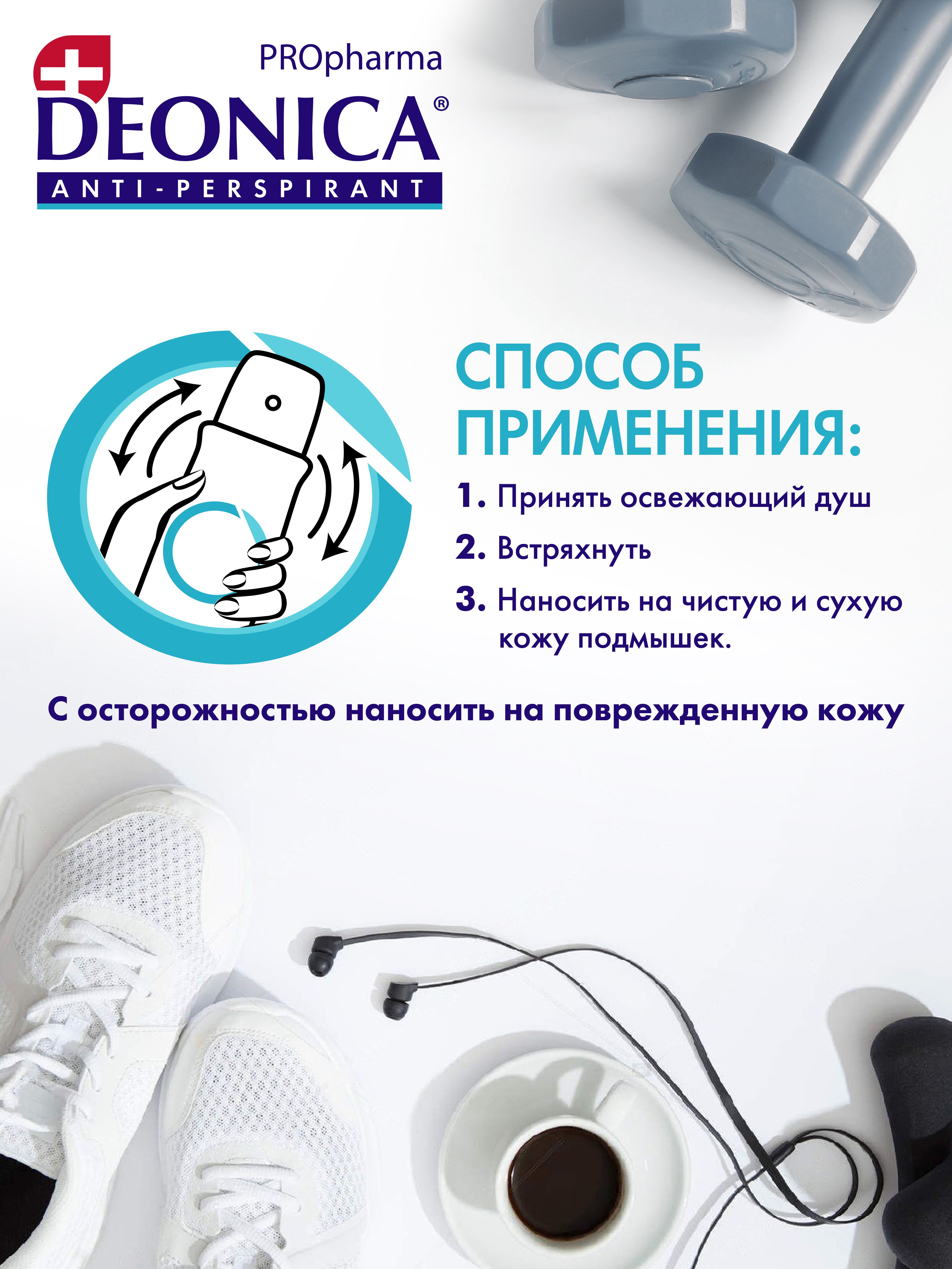 Текст при отключенной в браузере загрузке изображенийБудь уверена!С антиперспирантом от Deonica ты можешь быть уверен в своей свежести в течение всего дня! Текст при отключенной в браузере загрузке изображенийВсе в порядкеМожешь расслабиться и точно знать, что твои кожа и одежда в порядке.Текст при отключенной в браузере загрузке изображенийПротестировано!Антиперспирант клинически протестирован и одобрен дерматологамиТекст при отключенной в браузере загрузке изображенийУмные технологииБлагодаря уникальной технологии Smart control при повышении температуры тела высвобождаются микрокапсулы, усиливая аромат и действие антиперспиранта именно тогда, когда вам это необходимо!