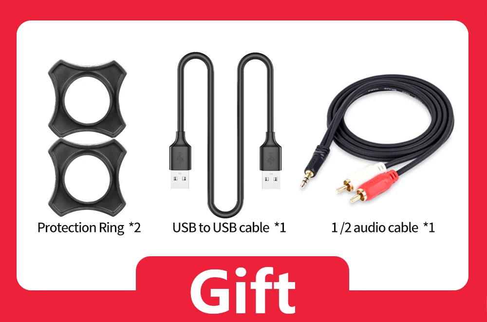 Gift Protection*1,USB cable*1,1/2 audio cable*1