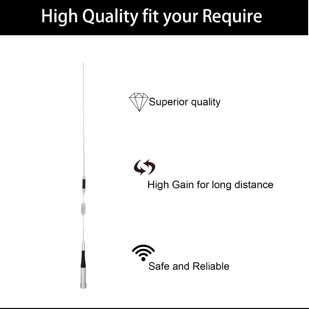 Коэффициент усиления: 2.15dBi(144 МГц) 5.2dBi(430 МГц)