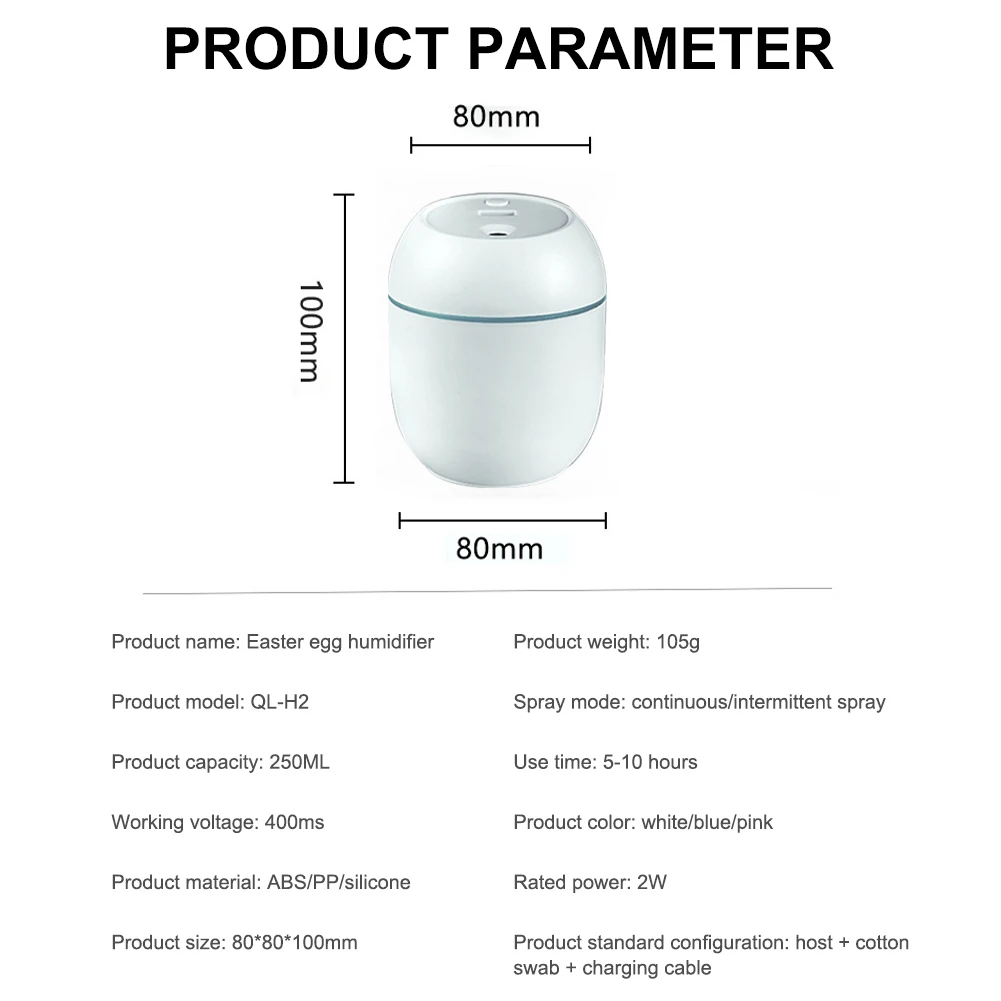 * 1. Мини-увлажнитель USB с usb-портом на выходе, умным светодиодным индикатором, низким уровнем шума, который не нарушает работу и сон.