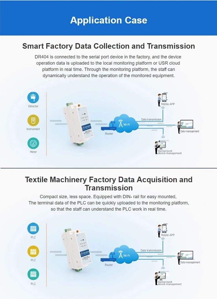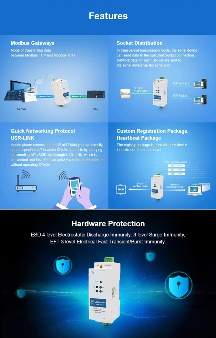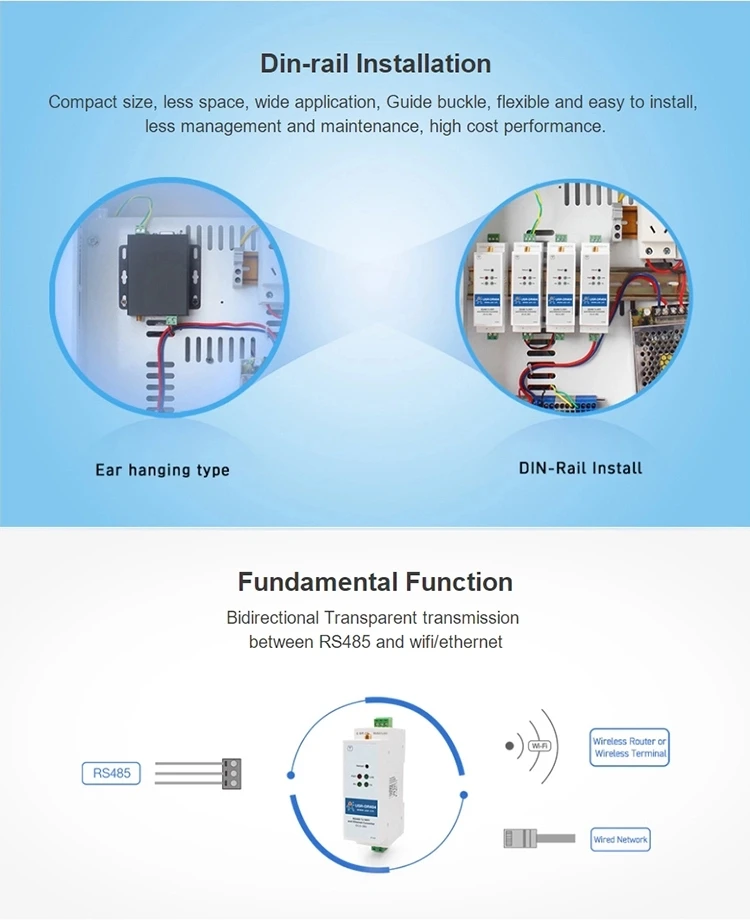Din-рейка с последовательным портом RS485 к Wi-Fi Ethernet-преобразователю устройства IOT сервер USR-DR404 с поддержкой Modbus MQTT