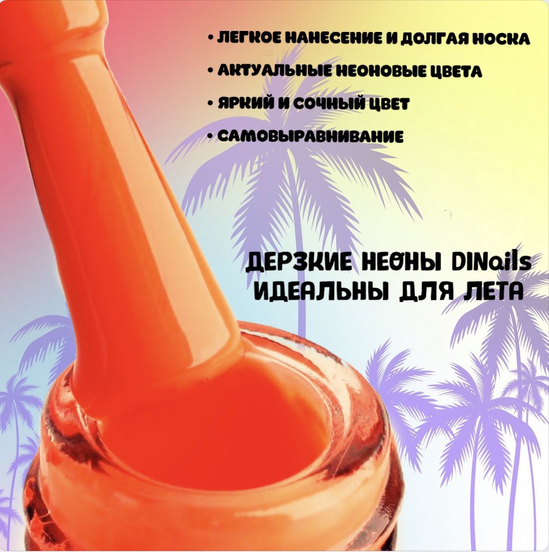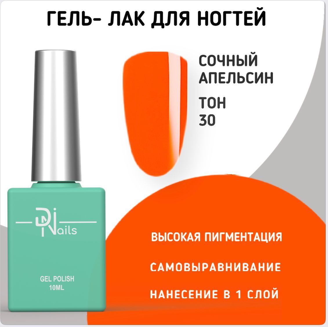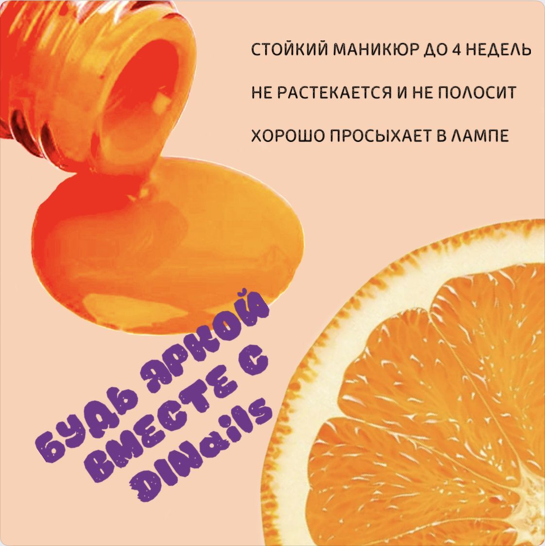 DINails Неоновый гель- лак для ногтей, ярко оранжевый. Сочный апельсин- гель лак для маникюра, 10 мл. Хит лета 2023