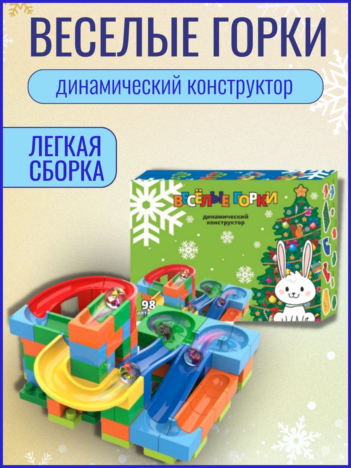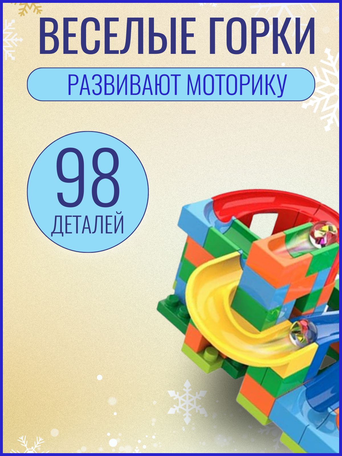 Описание: Построй трассу с горками, воронками и мостами! Наблюдай как по ней катятся шарики и преодолевают препятствия! Из 98 деталей можно соорудить уникальную конструкцию, которая чем-то напоминает горки в аквапарке. По ней тоже можно скатываться, только делать это будут маленькие шарики. Для начала можно помочь ребёнку в сооружении огромной трассы, ведь нужно правильно расставить все переходы и соединить трубы между собой. Подходит Конструктор для мальчиков и для девочек. После строительства можно вместе наблюдать, как шарики преодолевают препятствия и устраивать соревнования наперегонки. Пока шарик катится, он встречает на своем пути много интересных преград: крутится в воронке, проваливается в трубу и проходит через многочисленные мельницы. Собирать горку-трассу по инструкции совсем не обязательно, малышу можно сразу приступить к постройке своих собственных шедевров.