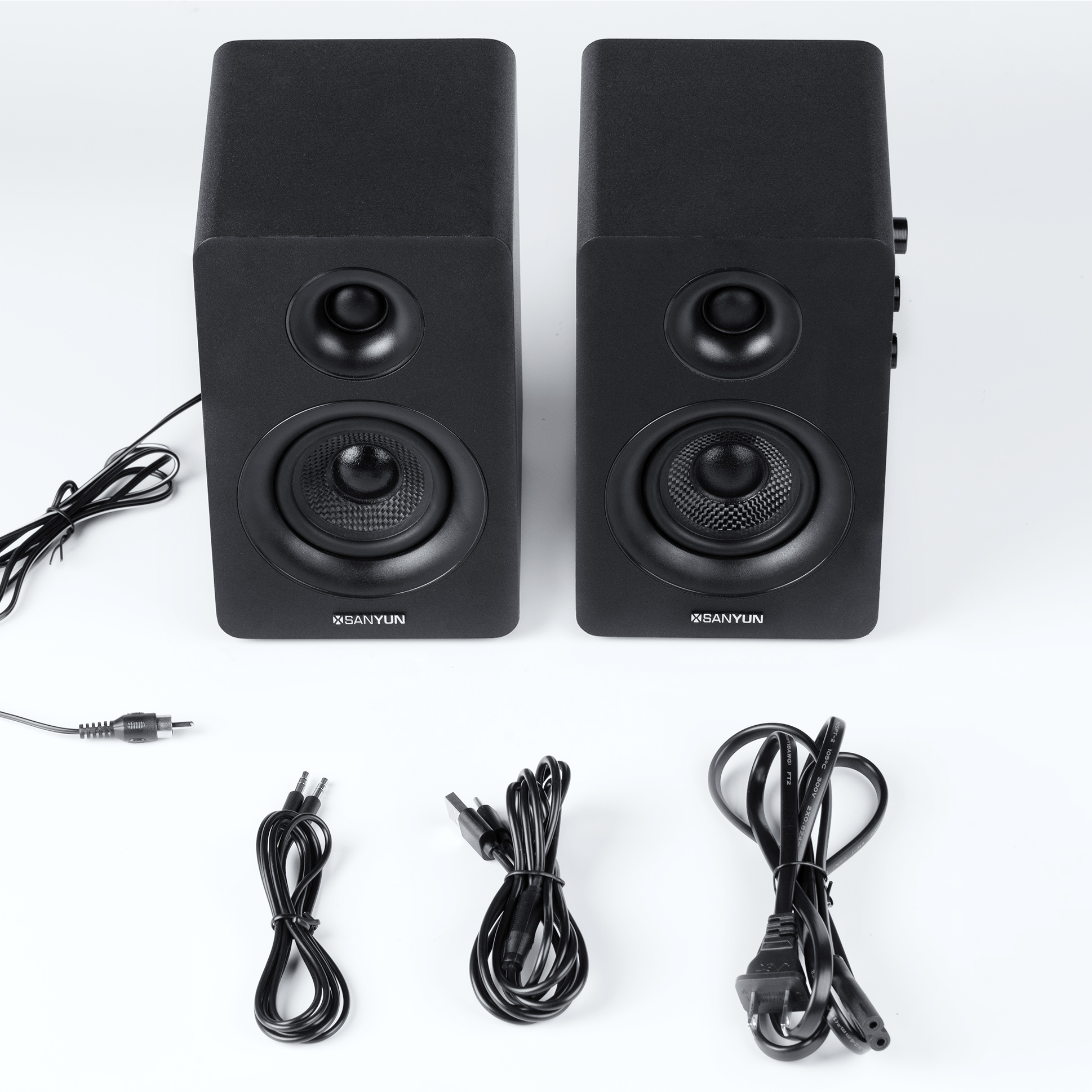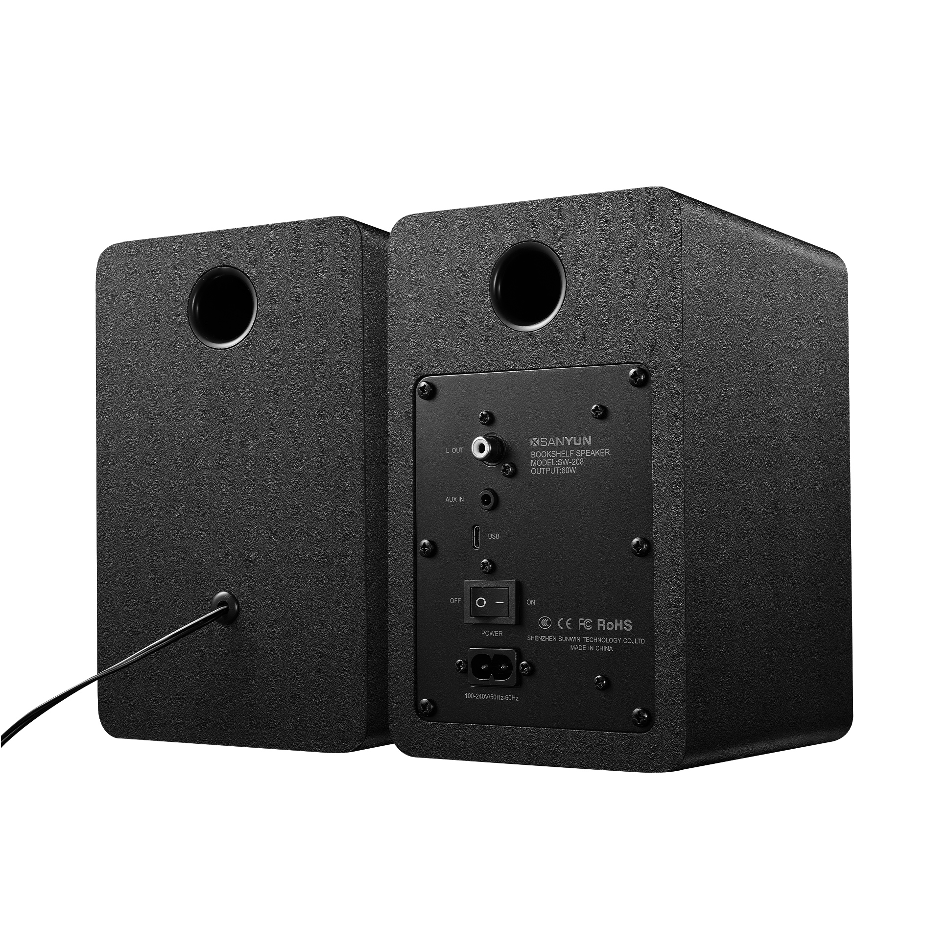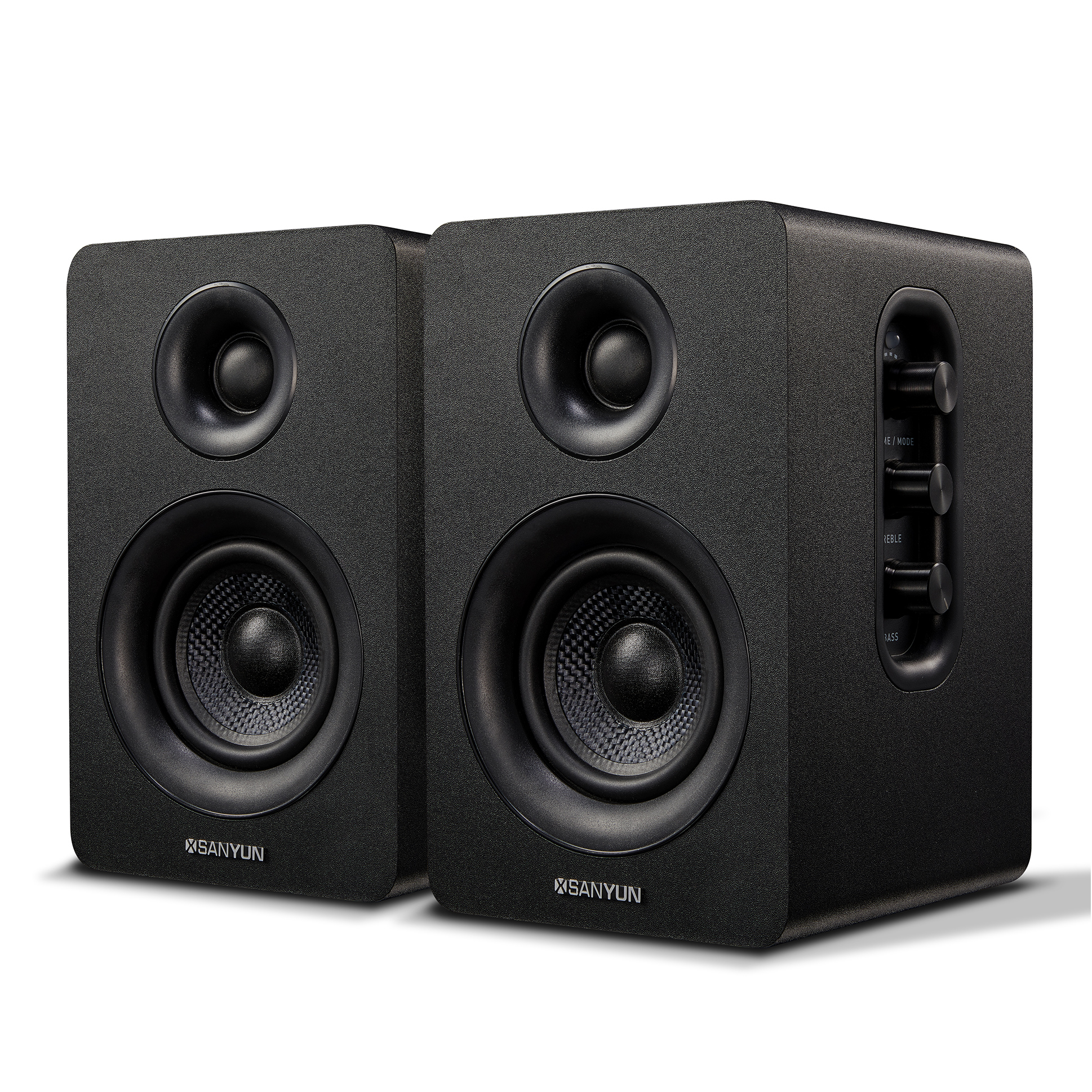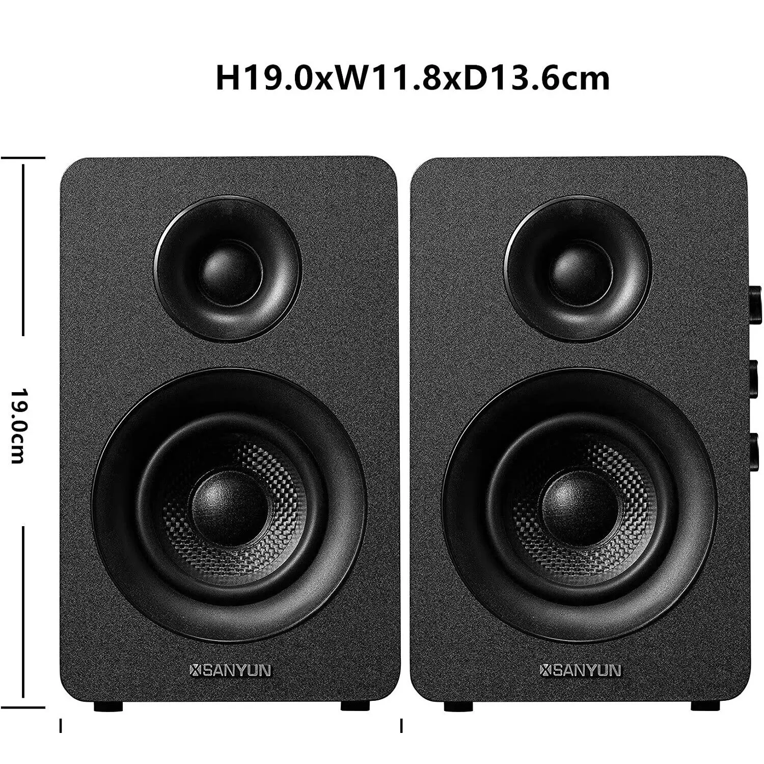 Sanyun SW208 Bluetooth 5,0 активные Полочные динамики, динамик из углеродного волокна мощностью 60 Вт для динамического объемного 3D-звука, встроенный 24-битный DAC, идеально подходит для игр и монитора ПК, идеально подходит для меломанов и геймеров (пара, черный)
