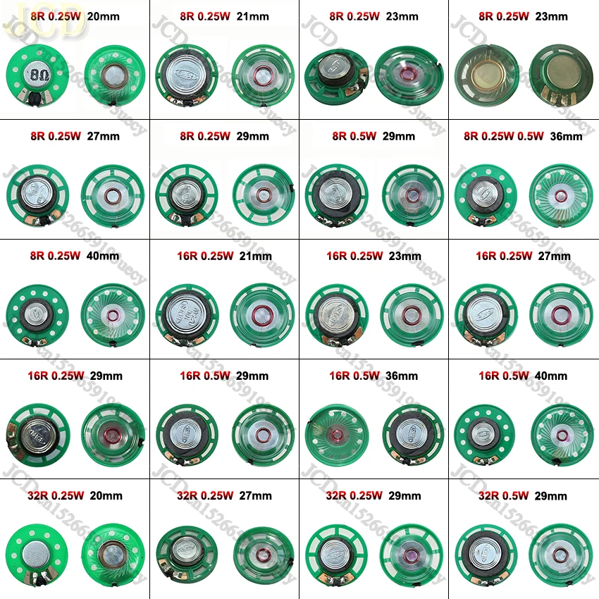 Динамик JCD 1 шт. 8 Ом 0,25 Вт 0,5 Вт 16/32ом громкий динамик 8R 16R 32R 20 мм 21 мм 23 мм 27 мм 40 мм