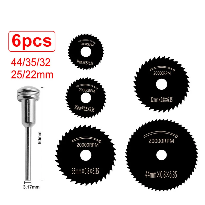 Диск для циркулярной пилы из быстрорежущей стали, комплект из 7 предметов, для Dremel, металлический резак, электроинструмент, режущие диски по дереву, сверло с отверстием 22-50 мм