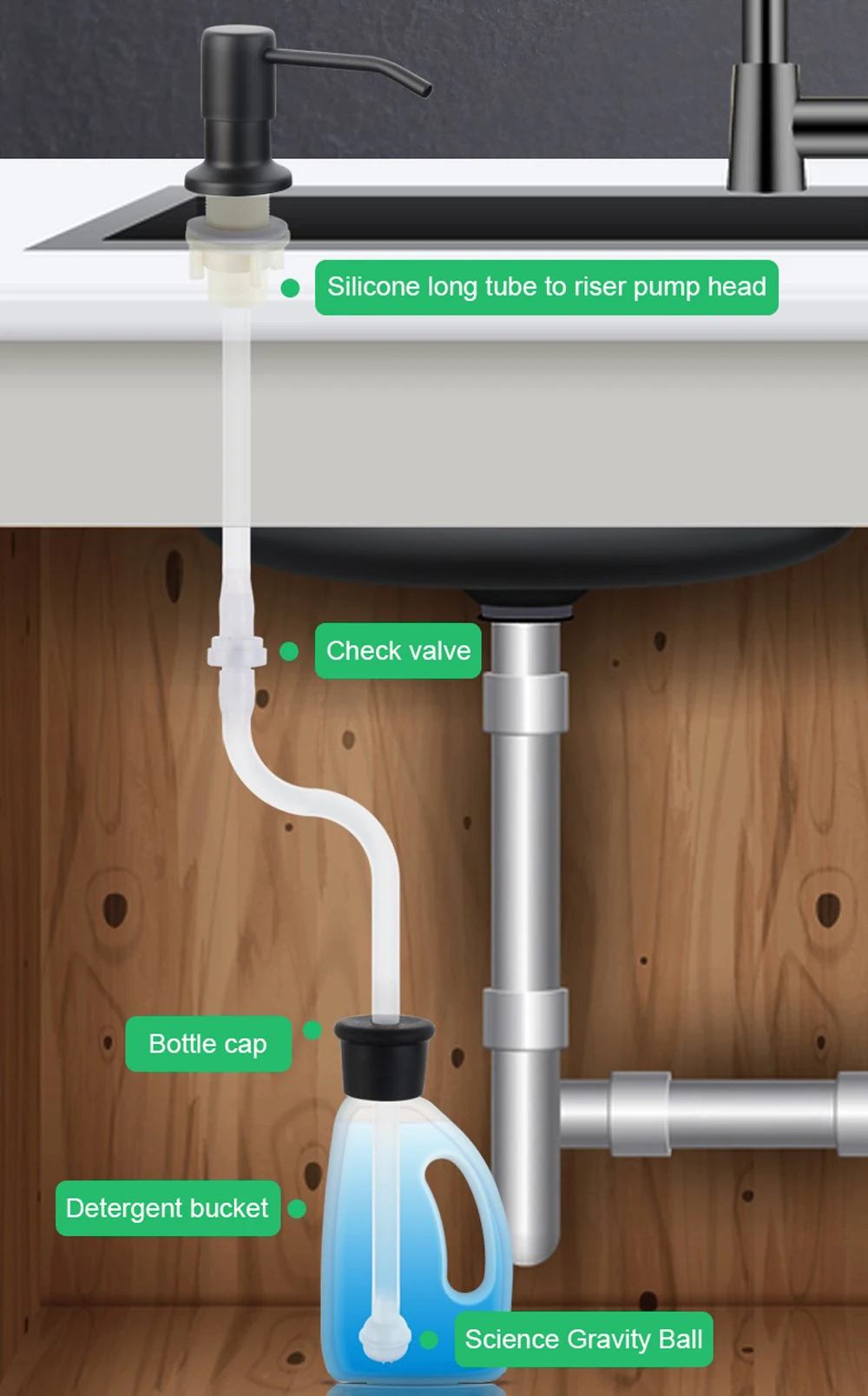 -Dish soap can be pumped into the sink manufactured with quality materials works as a soap dispenser or as a lotion dispenser