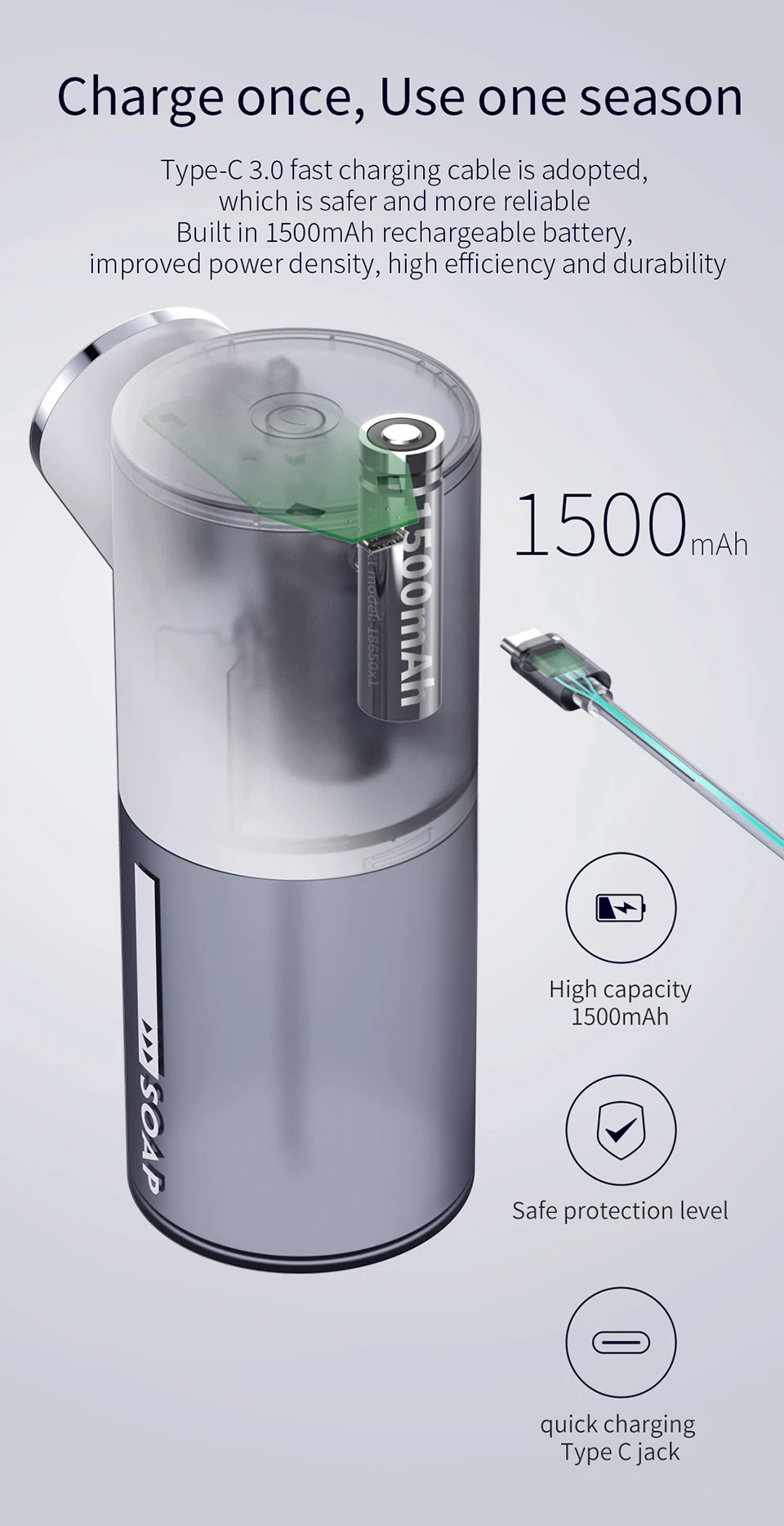 Диспенсер для жидкого мыла с USB-зарядкой, 320 мл