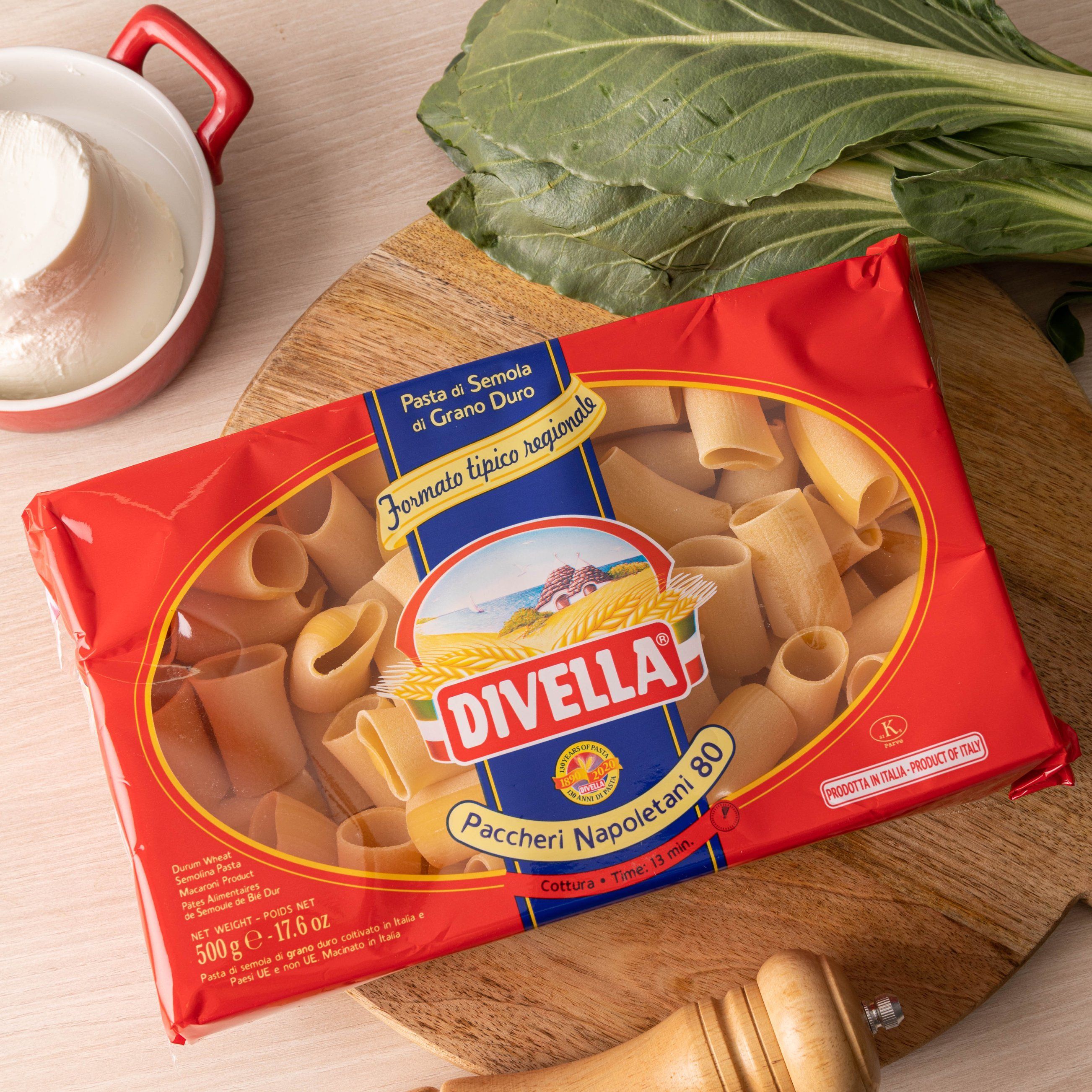 Описание: Divella Паккери (Paccheri)Паккери (Paccheri) — это традиционная неаполитанская паста с характерной крупной трубчатой формой.