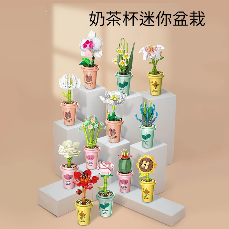 DIY MOC в горшке, искусственный кактус, Гипсофила, бонсай, дерево, сады, романтические строительные блоки, модели, кирпичи, детские наборы, игрушки