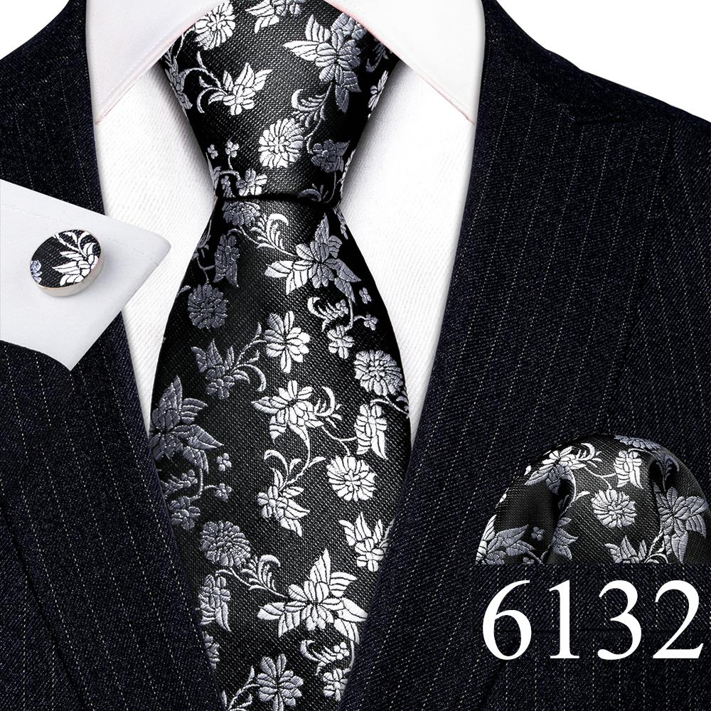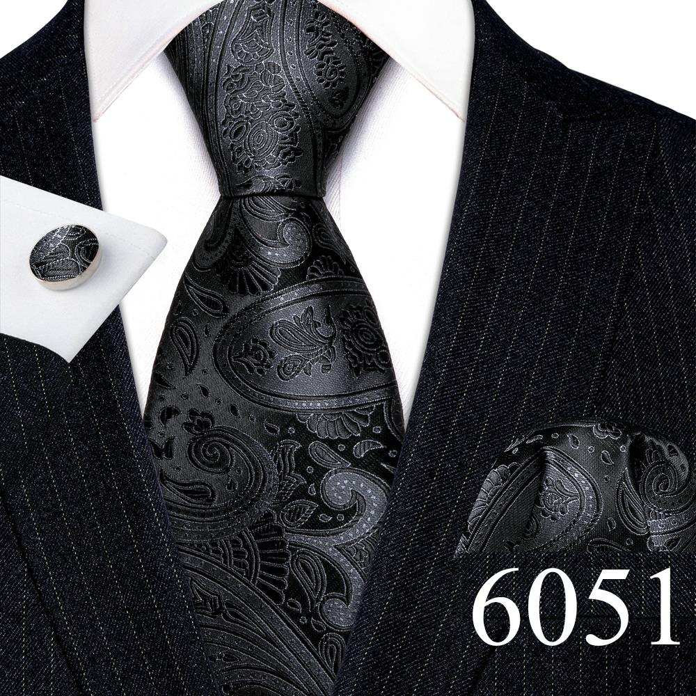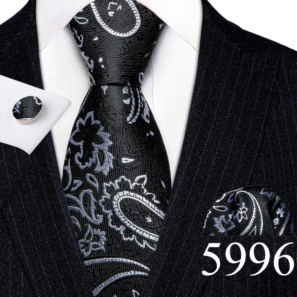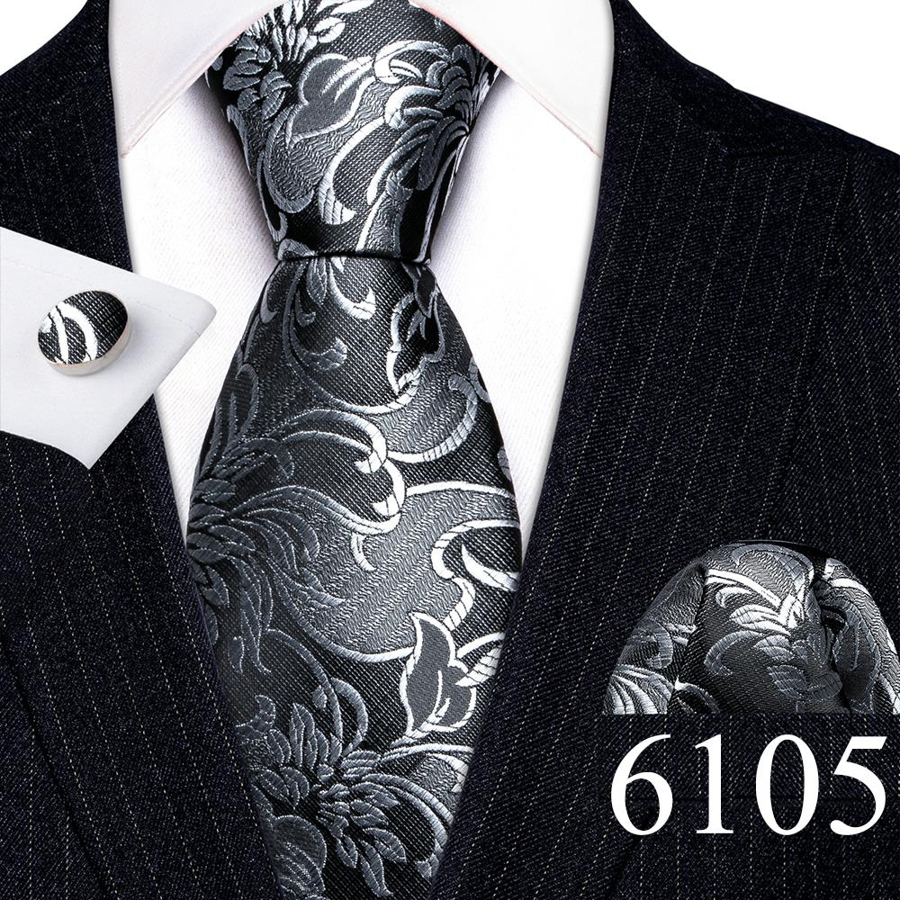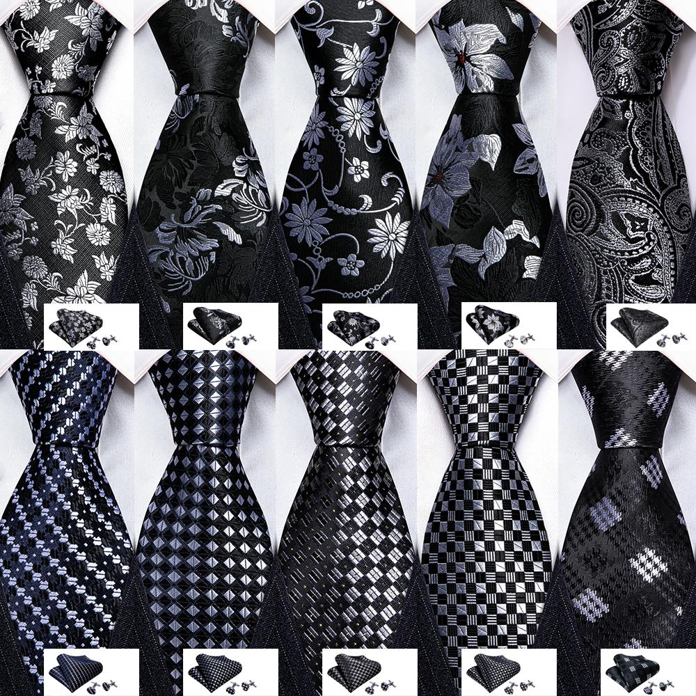 Дизайнерские галстуки для мужчин, черные, серебристые, серые, однотонные, с узором пейсли, в полоску, в клетку, с цветочным узором, с галстуком, с карманом, квадратные запонки, набор, Барри · Ван