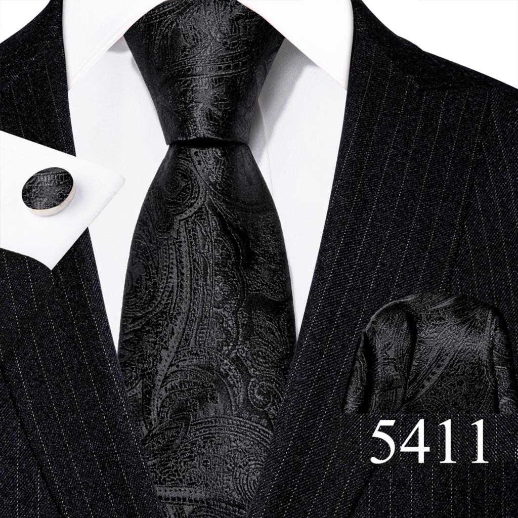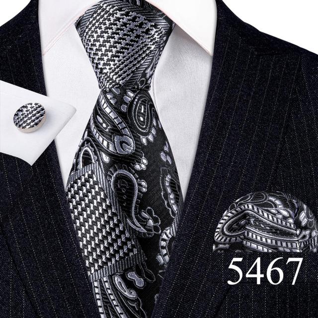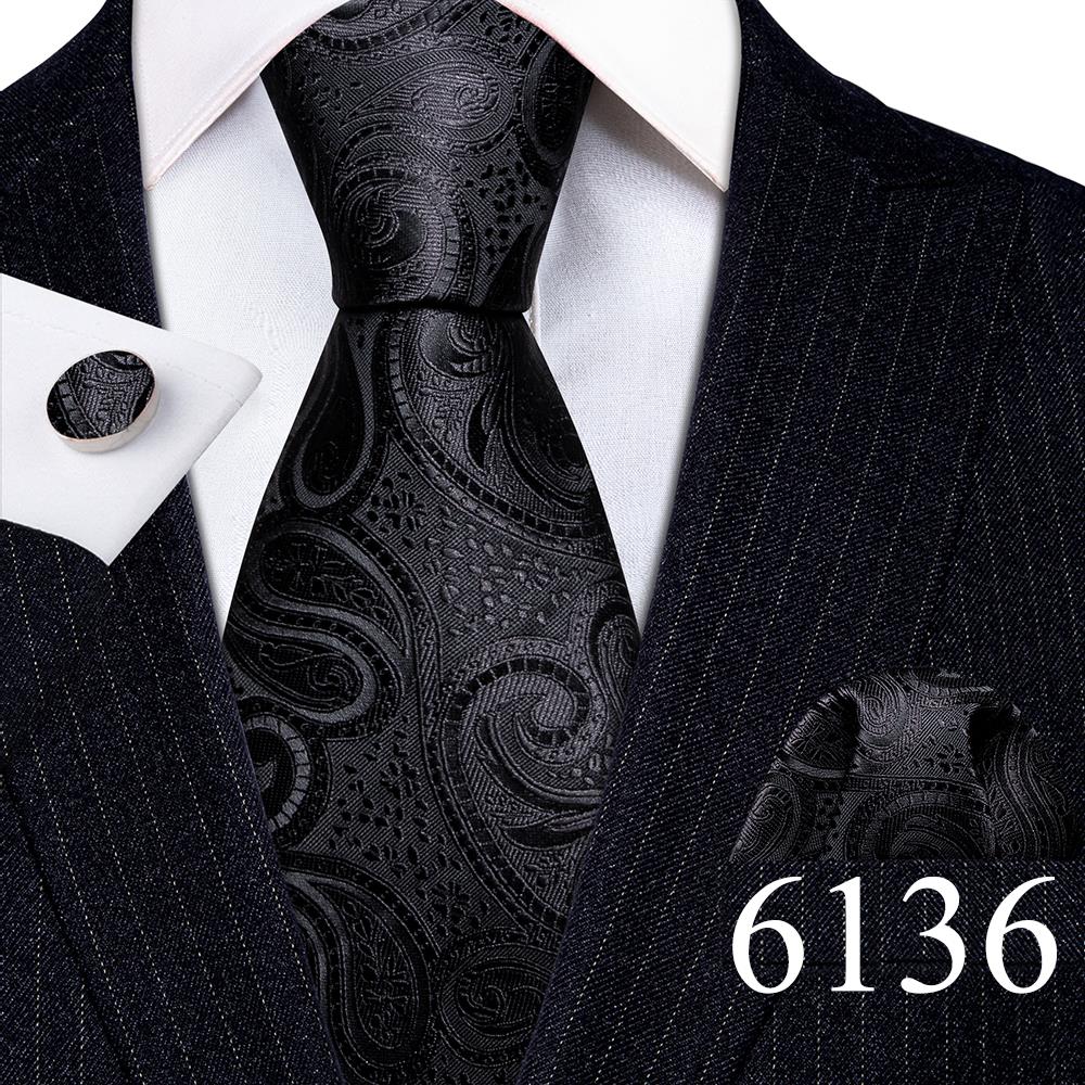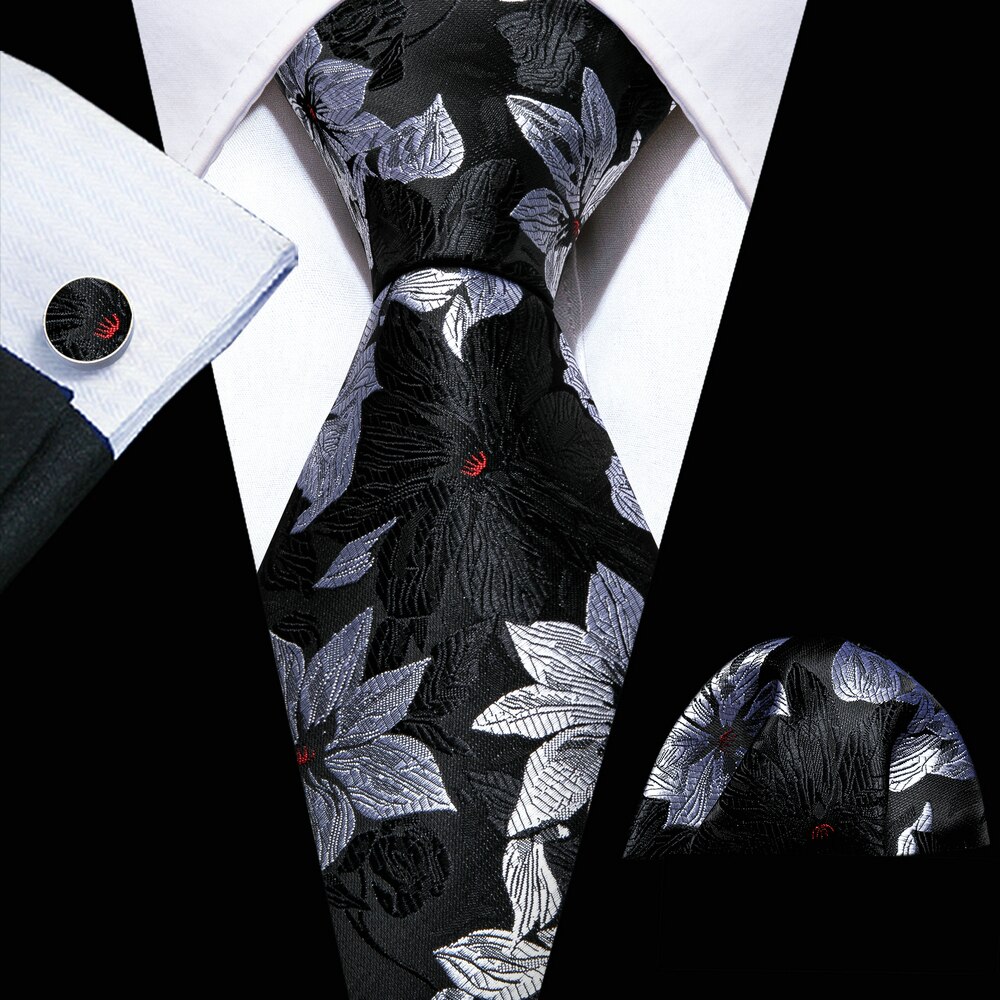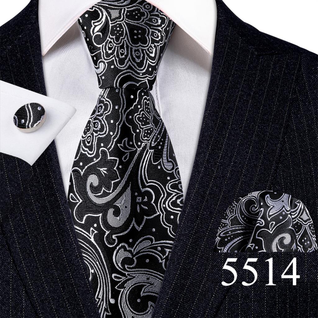 Дизайнерские галстуки для мужчин, черные, серебристые, серые, однотонные, с узором пейсли, в полоску, в клетку, с цветочным узором, с галстуком, с карманом, квадратные запонки, набор, Барри · Ван