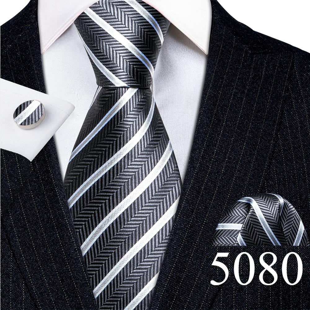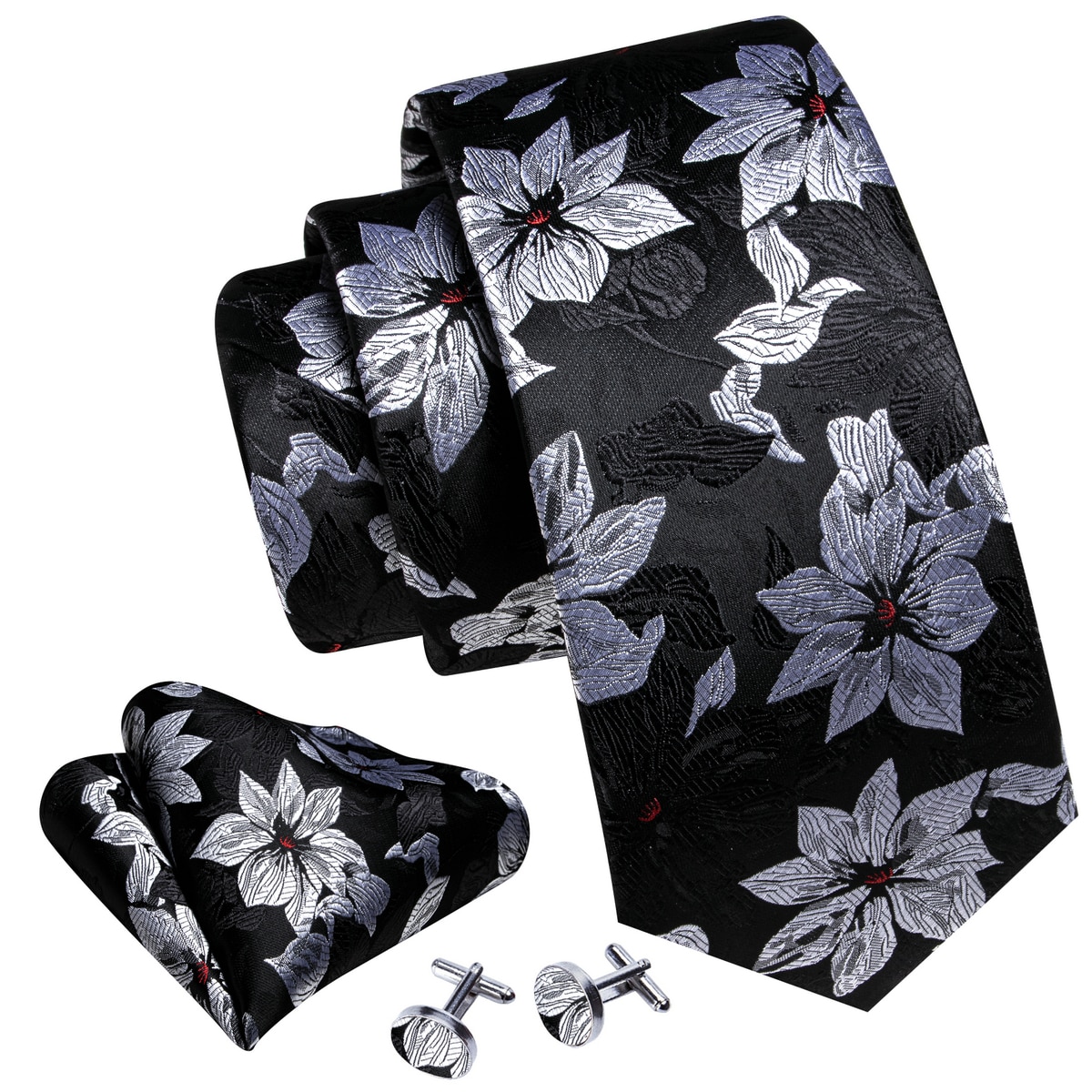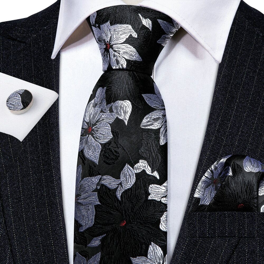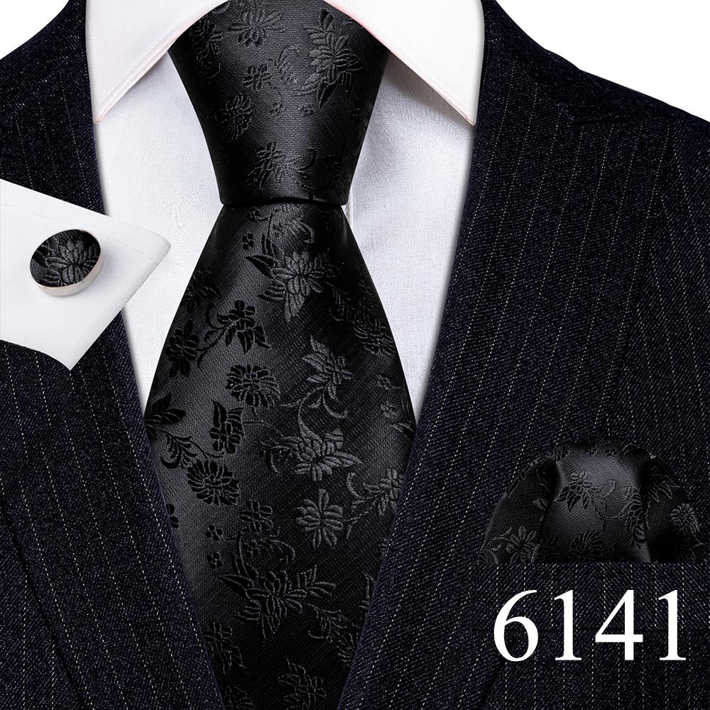 Дизайнерские галстуки для мужчин, черные, серебристые, серые, однотонные, с узором пейсли, в полоску, в клетку, с цветочным узором, с галстуком, с карманом, квадратные запонки, набор, Барри · Ван