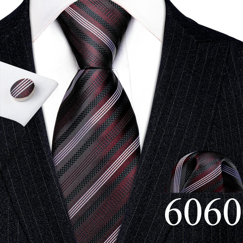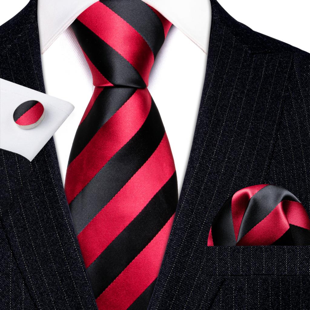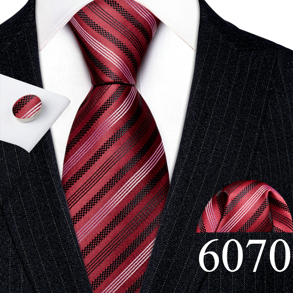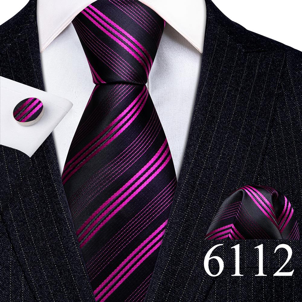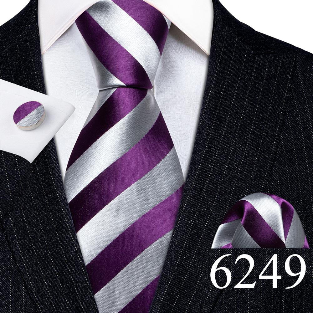 Дизайнерские мужские галстуки Красный Черный Полосатый золотой белый синий фиолетовый Шелковый шейный галстук Hanky запонки набор свадебный подарок Барри · Ван 6144