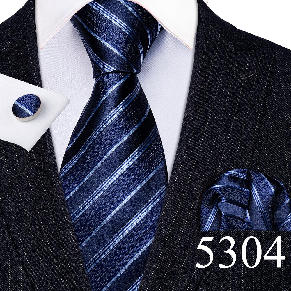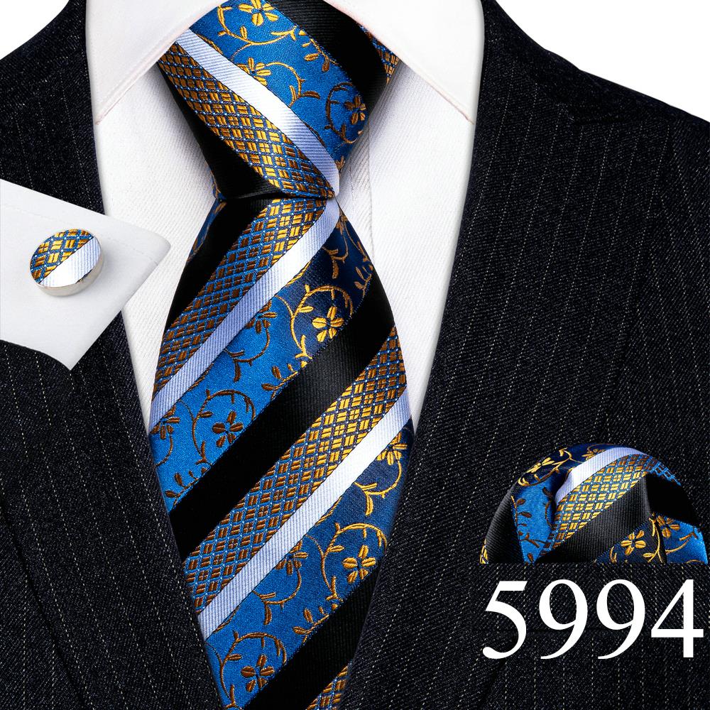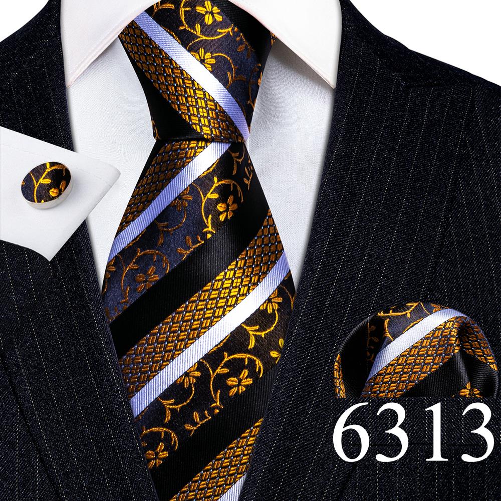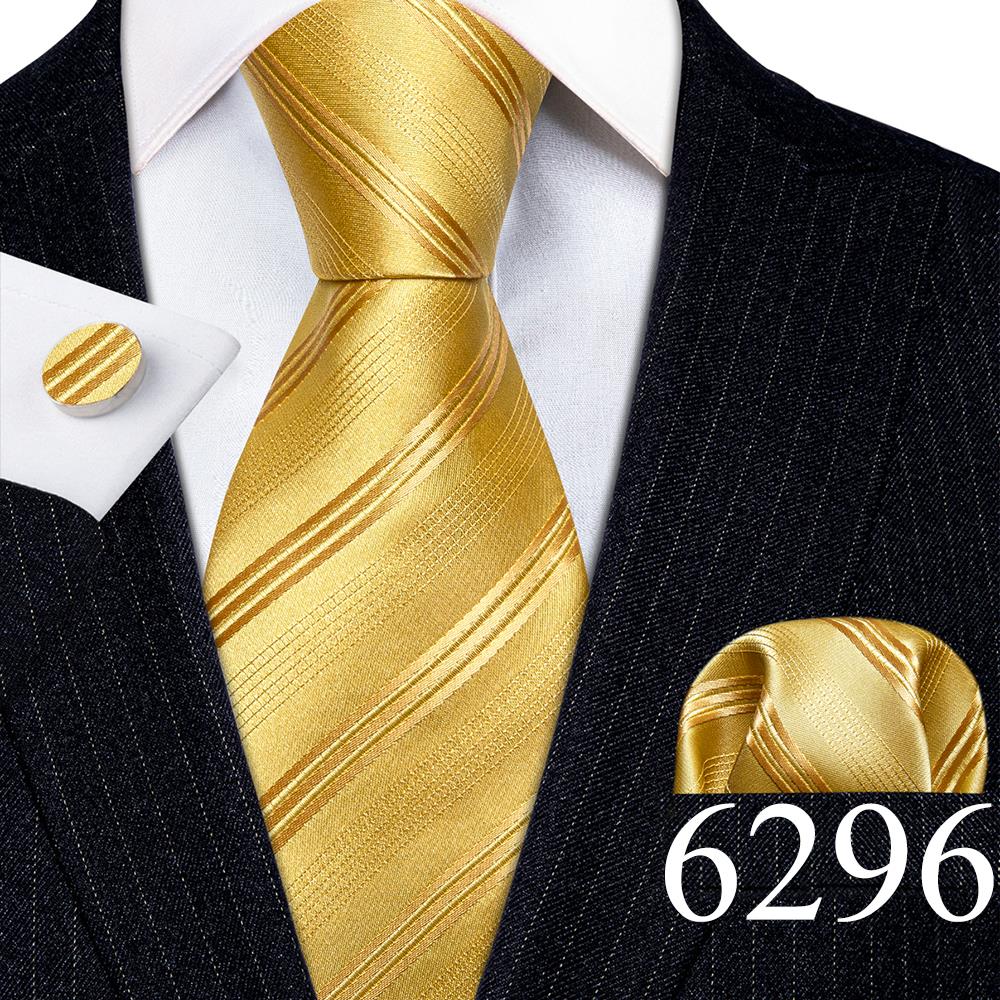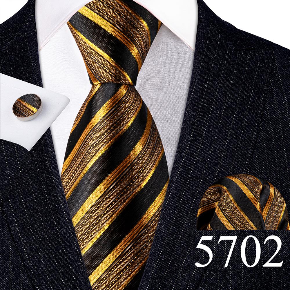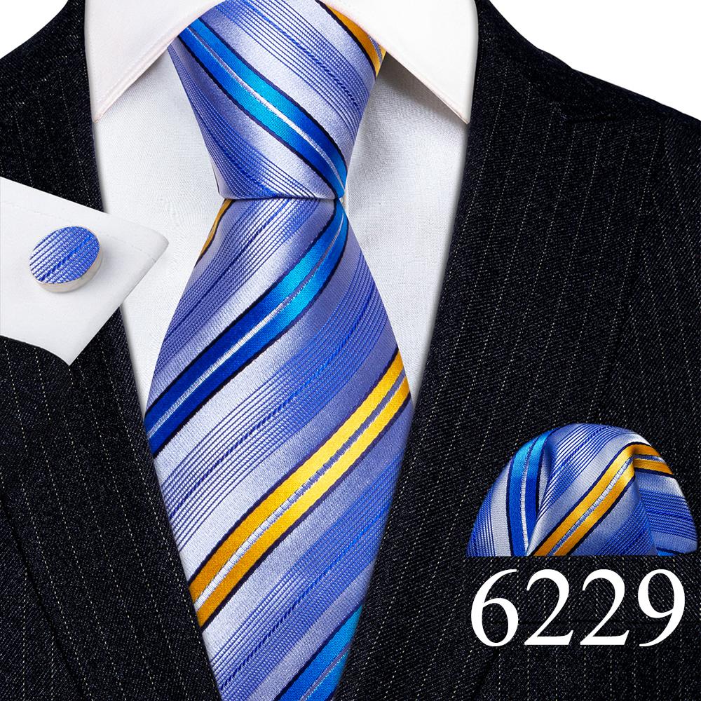 Дизайнерские мужские галстуки Красный Черный Полосатый золотой белый синий фиолетовый Шелковый шейный галстук Hanky запонки набор свадебный подарок Барри · Ван 6144