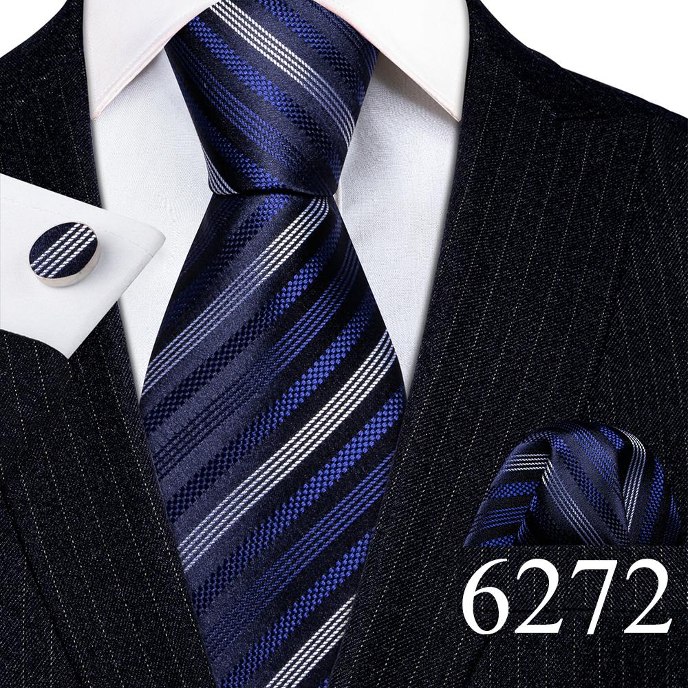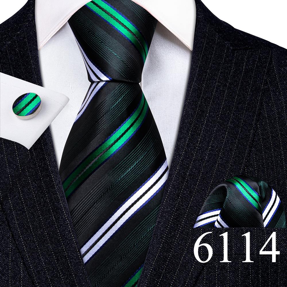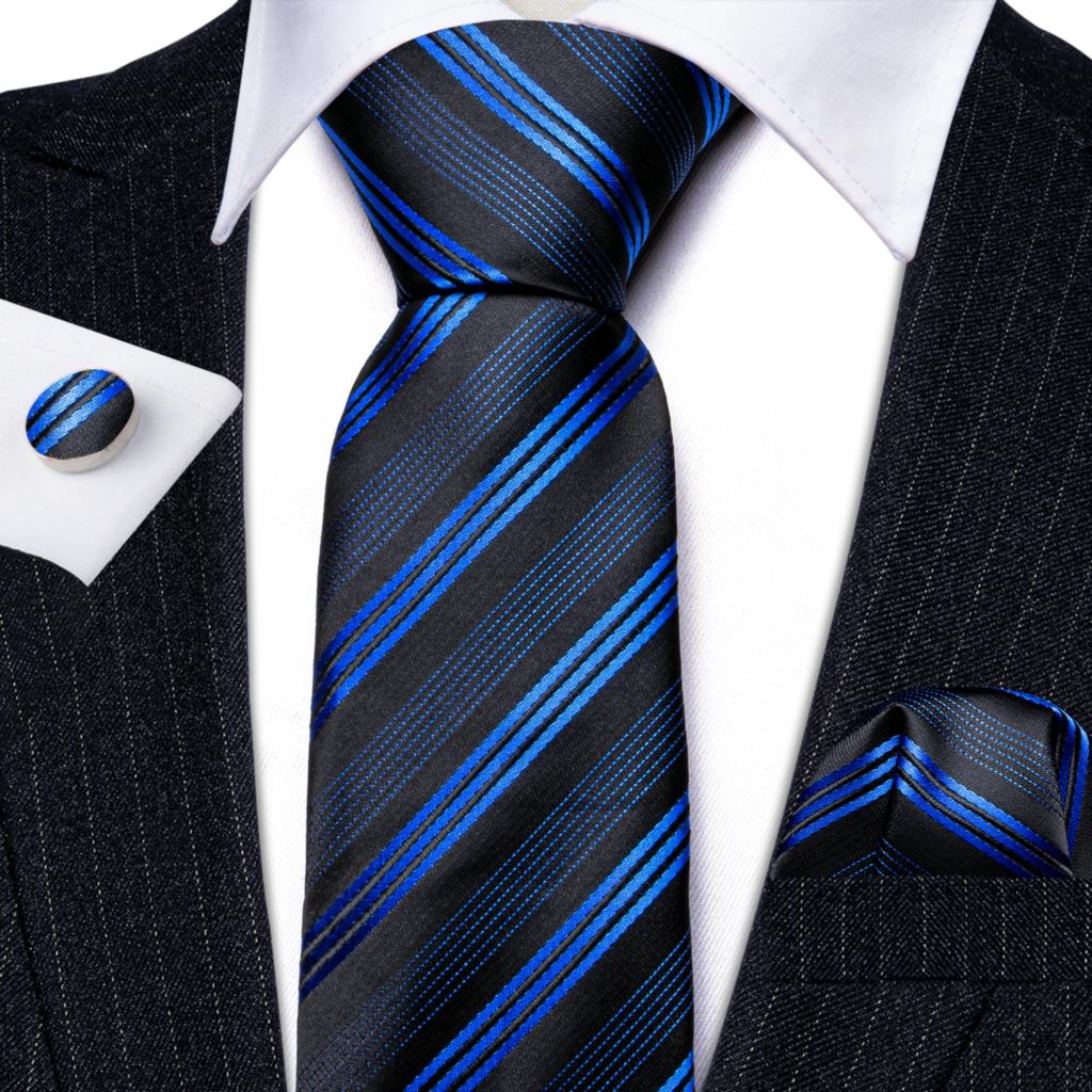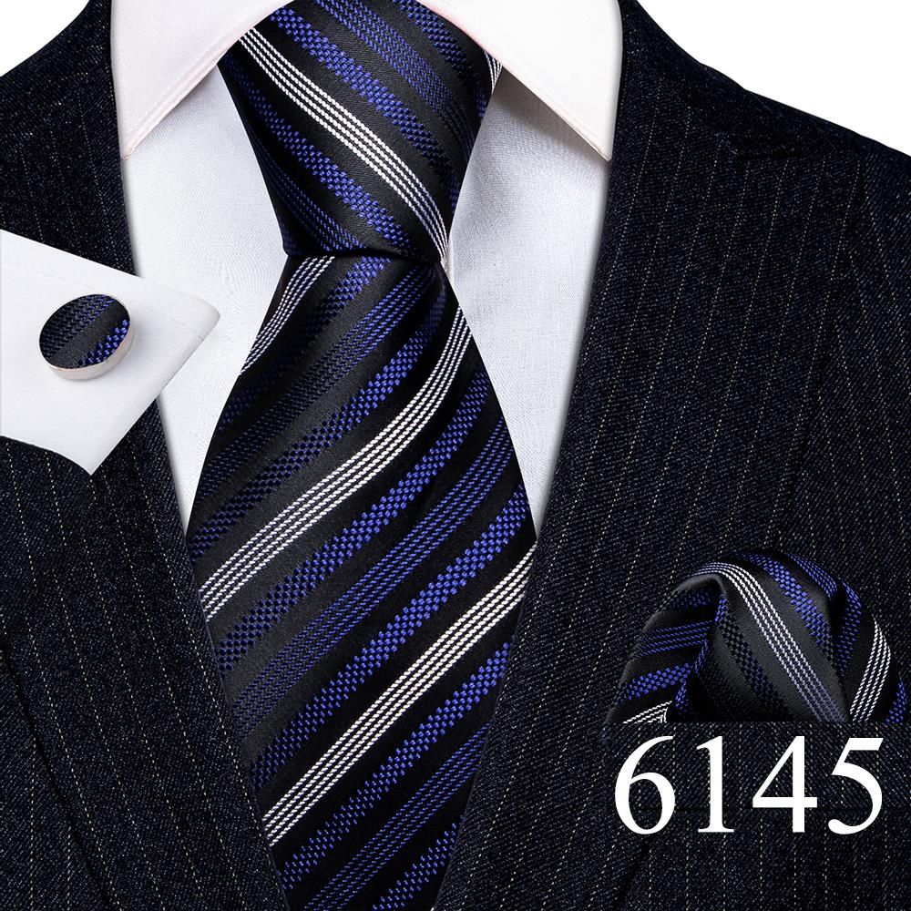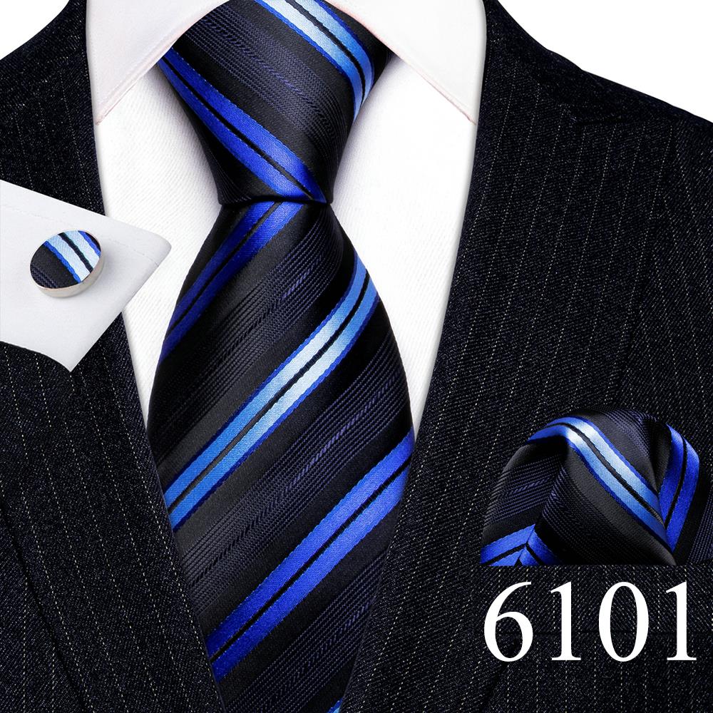 Дизайнерские шелковые галстуки в синюю и черную полоску для мужчин, красные, зеленые, золотые, фиолетовые, белые галстуки на шею, комплект свадебных запонок Hanky Barry · Wang 6113