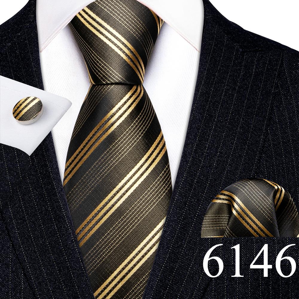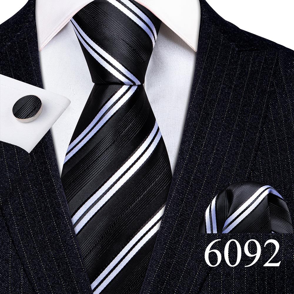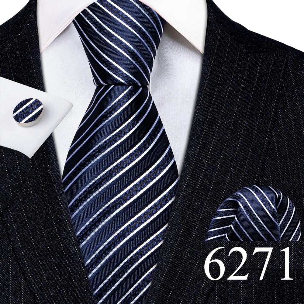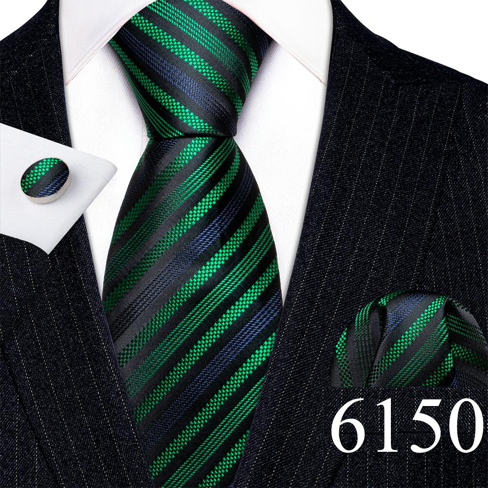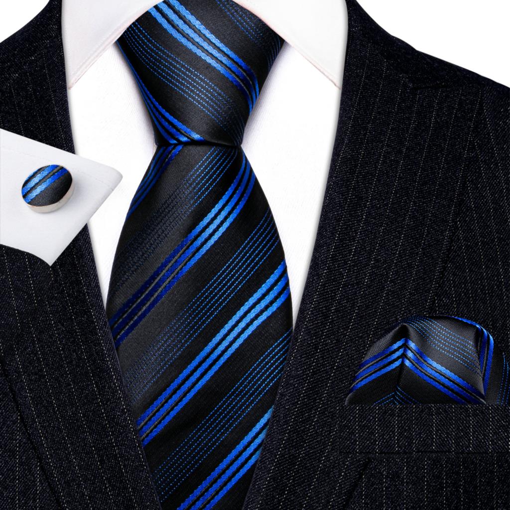 Дизайнерские шелковые галстуки в синюю и черную полоску для мужчин, красные, зеленые, золотые, фиолетовые, белые галстуки на шею, комплект свадебных запонок Hanky Barry · Wang 6113